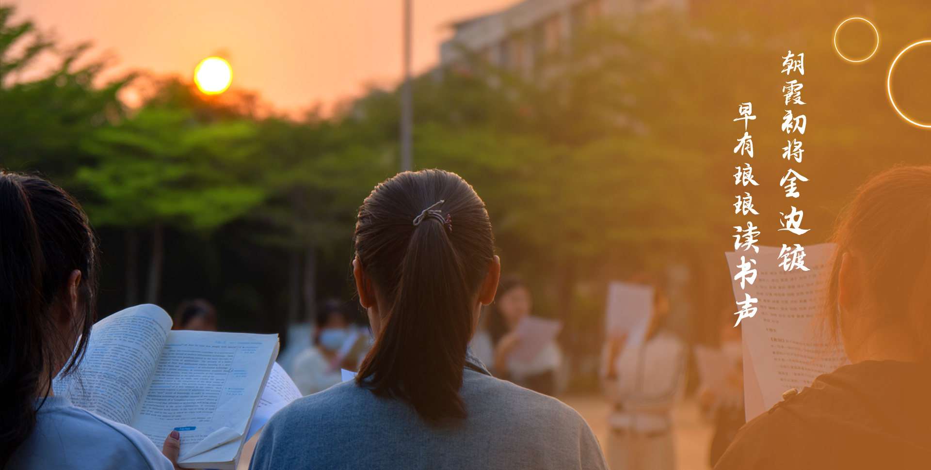 朝霞初将金边镀 早有琅琅读书声
