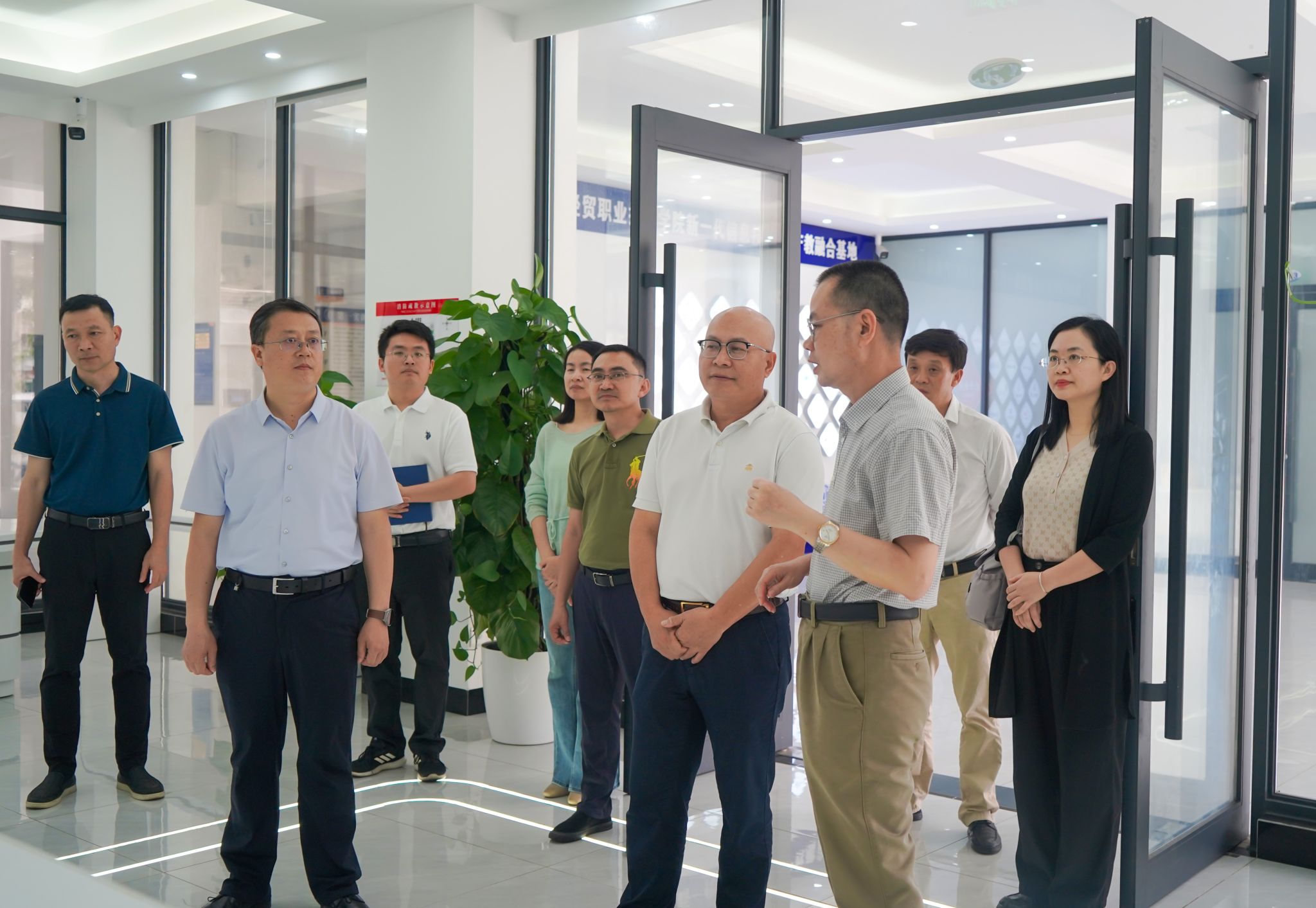 海南省技师学院一行先后参观了学校智慧旅游产教融合实训基地、汽车检测与维修实训中心、数智财务产教融合实践基地和新一代信息技术ICT产教融合基地。