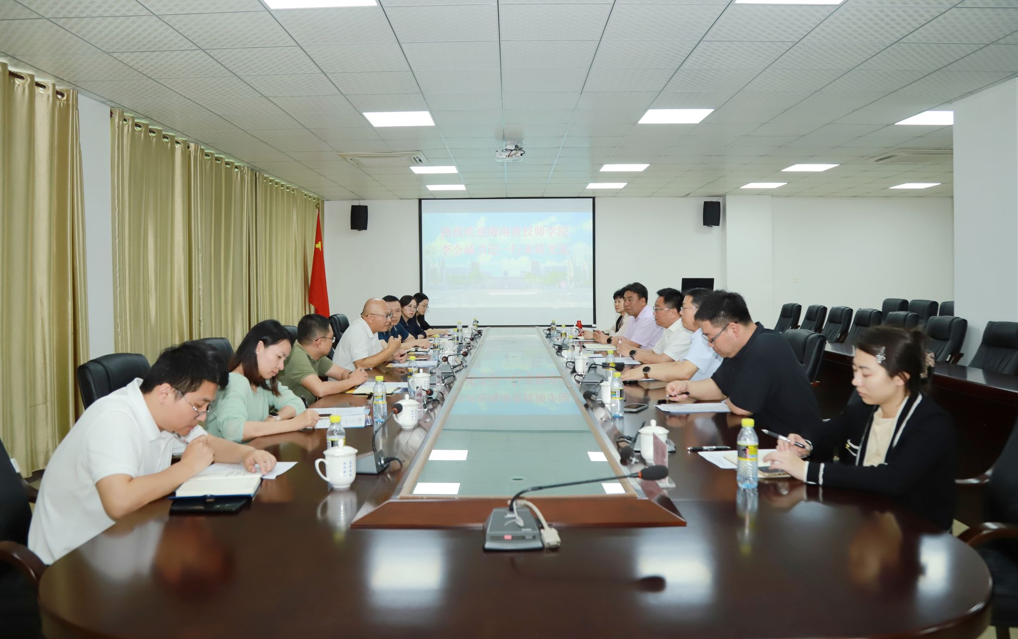 2025年4月10日,海南省技师学院党委书记李会诚一行7人来到bv伟德源自英国始于1946,就国际交流合作、国际教育培训和校企合作等方面进行座谈交流。学校党委书记王华,党委委员、副校长李厚永出席会议。