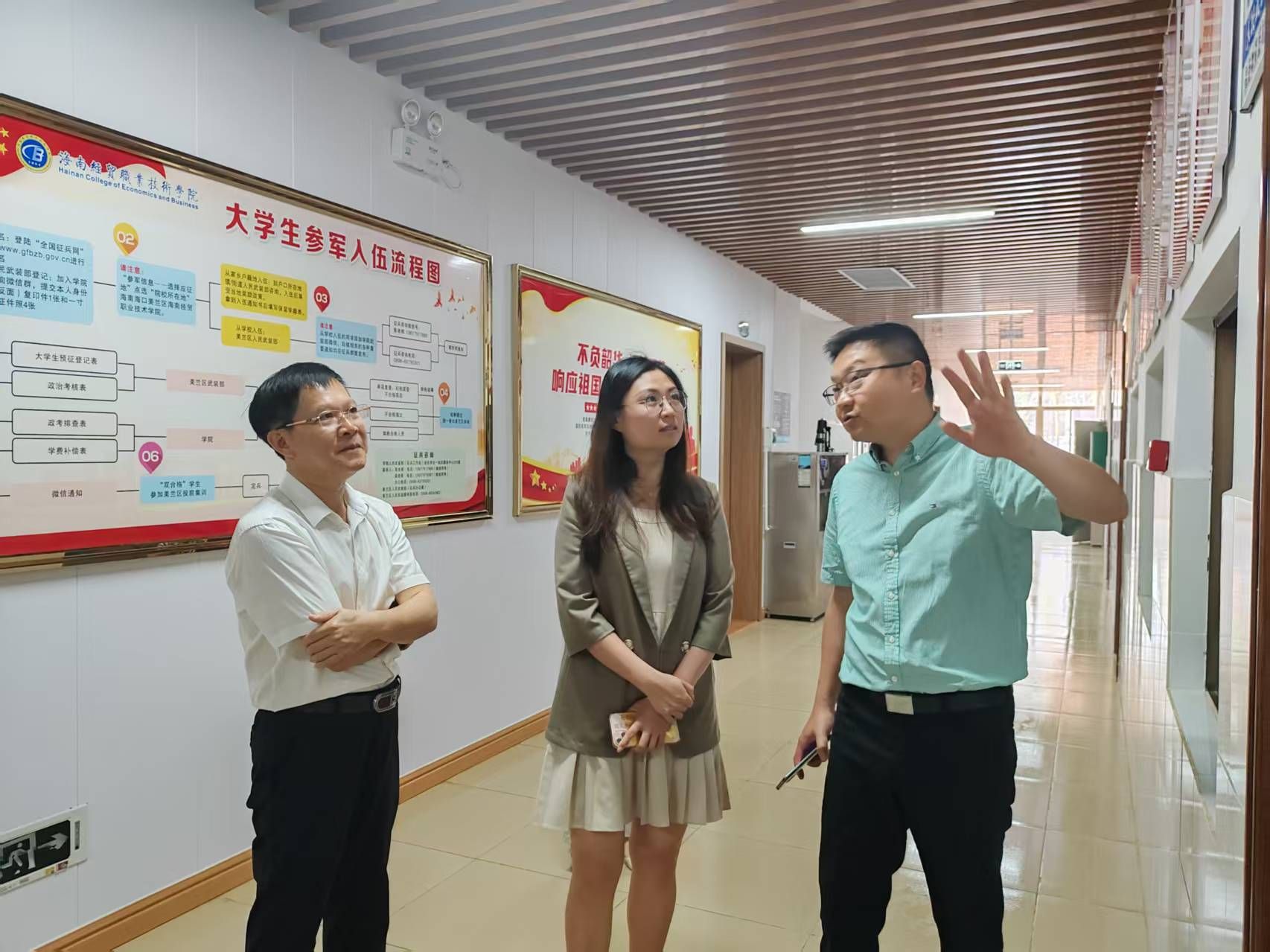陈修焕从学校发展、专业设置、人才培养等方面介绍了学校的基本情况。潘高子希望以此次交流为契机,建立常态化合作机制,在资源共享、人才共育等方面与海经贸开展务实合作。双方就学校建设、心理健康中心设施优化、征兵工作经验、深化产教融合、特色专业打造以及学生教育管理创新等方面进行交流。