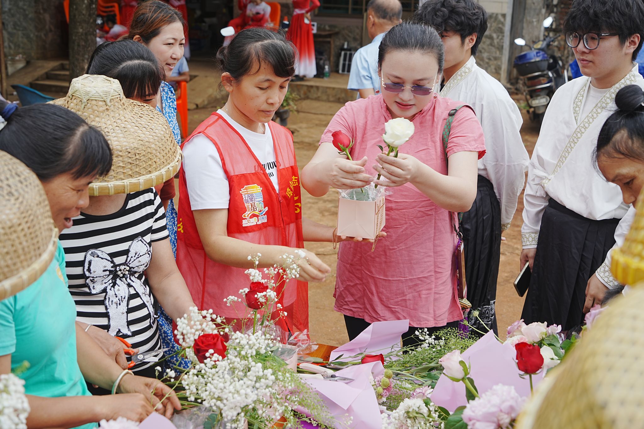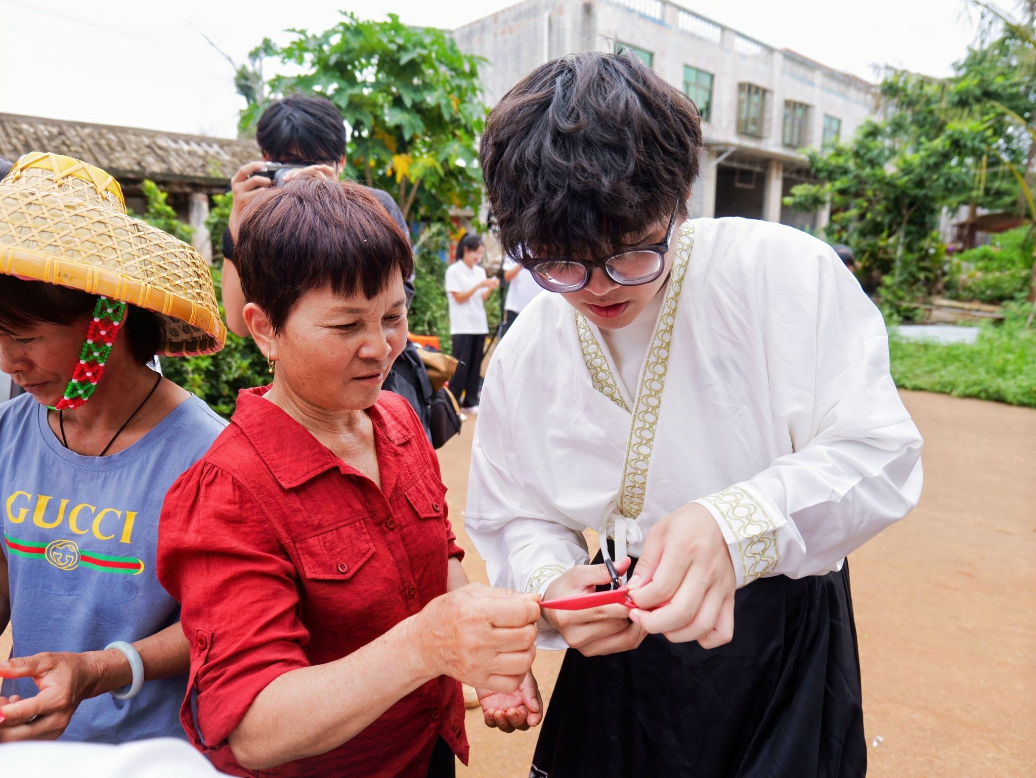 人文艺术学院的师生们则为村民带来了插花和剪纸体验项目。“花与花之间要留有空隙,这样才能体现中式插花的飘逸自然,更有美感。”师生们一边示范一边讲解。村民们认真地聆听,按照指导动手尝试,一盆盆充满创意的插花作品逐渐成型。在剪纸区域,精美的剪纸作品让村民们赞叹不已。“剪纸作品真精美,拿回家贴在窗玻璃上肯定好看。”一位村民拿着自己剪好的作品,脸上洋溢着幸福的笑容。通过这些体验项目,村民们不仅感受到了手工创作的乐趣,也领略到了中华优秀传统文化的魅力。