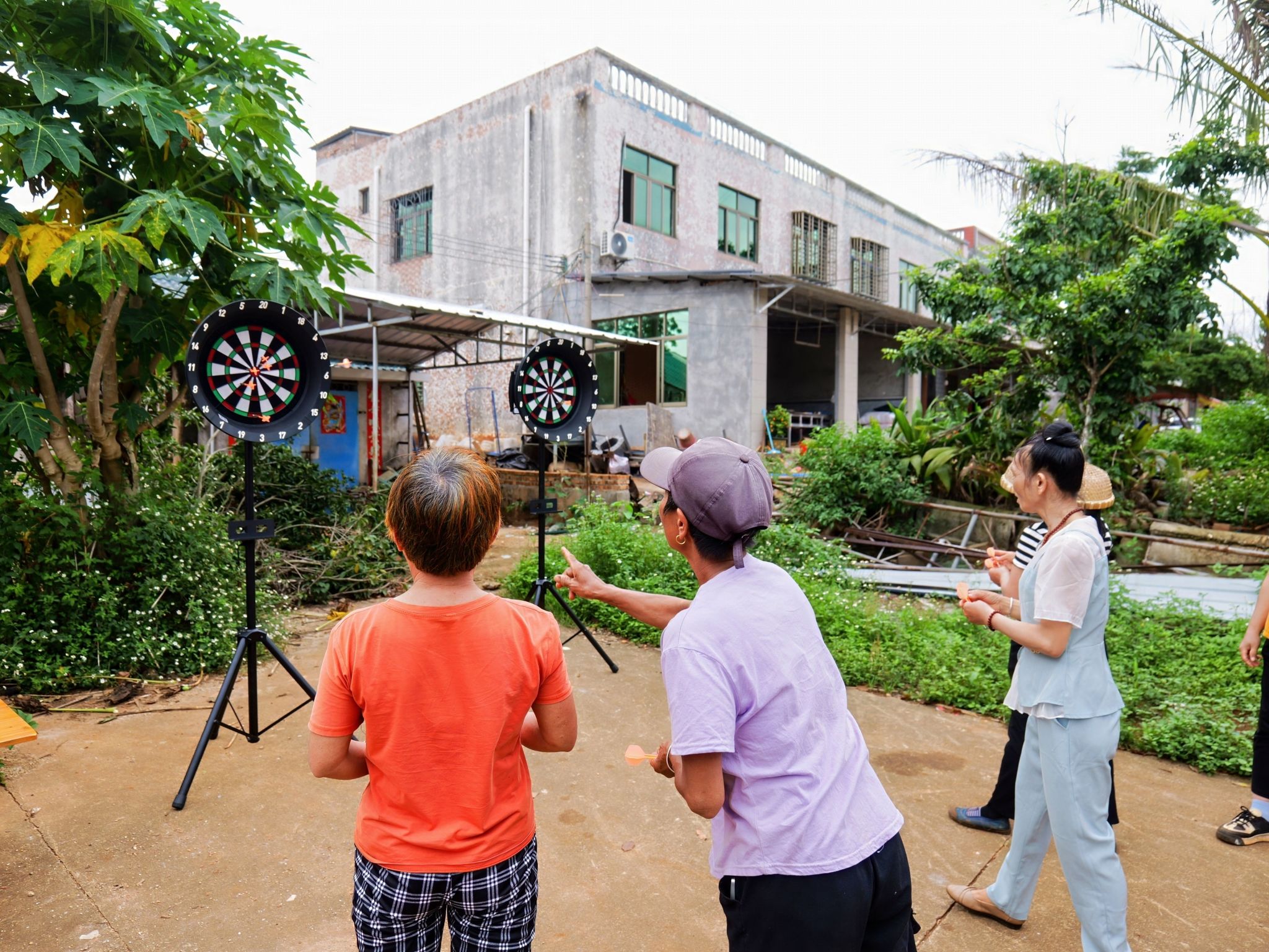 体育与健康学院的同学们带来了八段锦展示和飞镖教学。“双手托天理三焦,左右开弓似射雕……”同学们动作整齐划一,刚柔并济,将八段锦的韵味展现得淋漓尽致,同时为村民普及运动健康知识。在飞镖体验区,同学们向村民们演示飞镖动作,讲解得分要领。村民们纷纷上前一试身手。一时间,飞镖体验区热闹非凡,欢声笑语不断,将活动氛围推向了高潮。