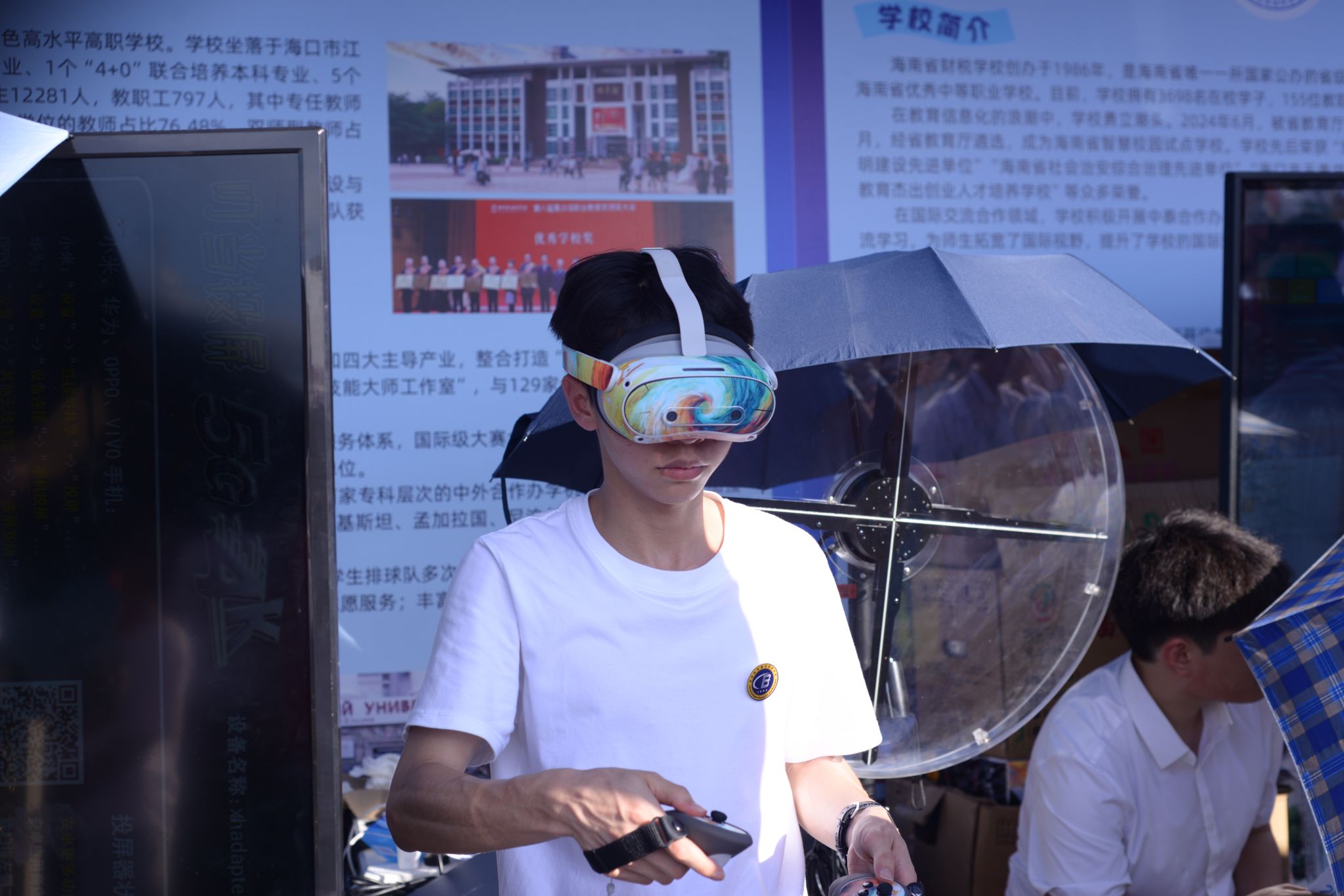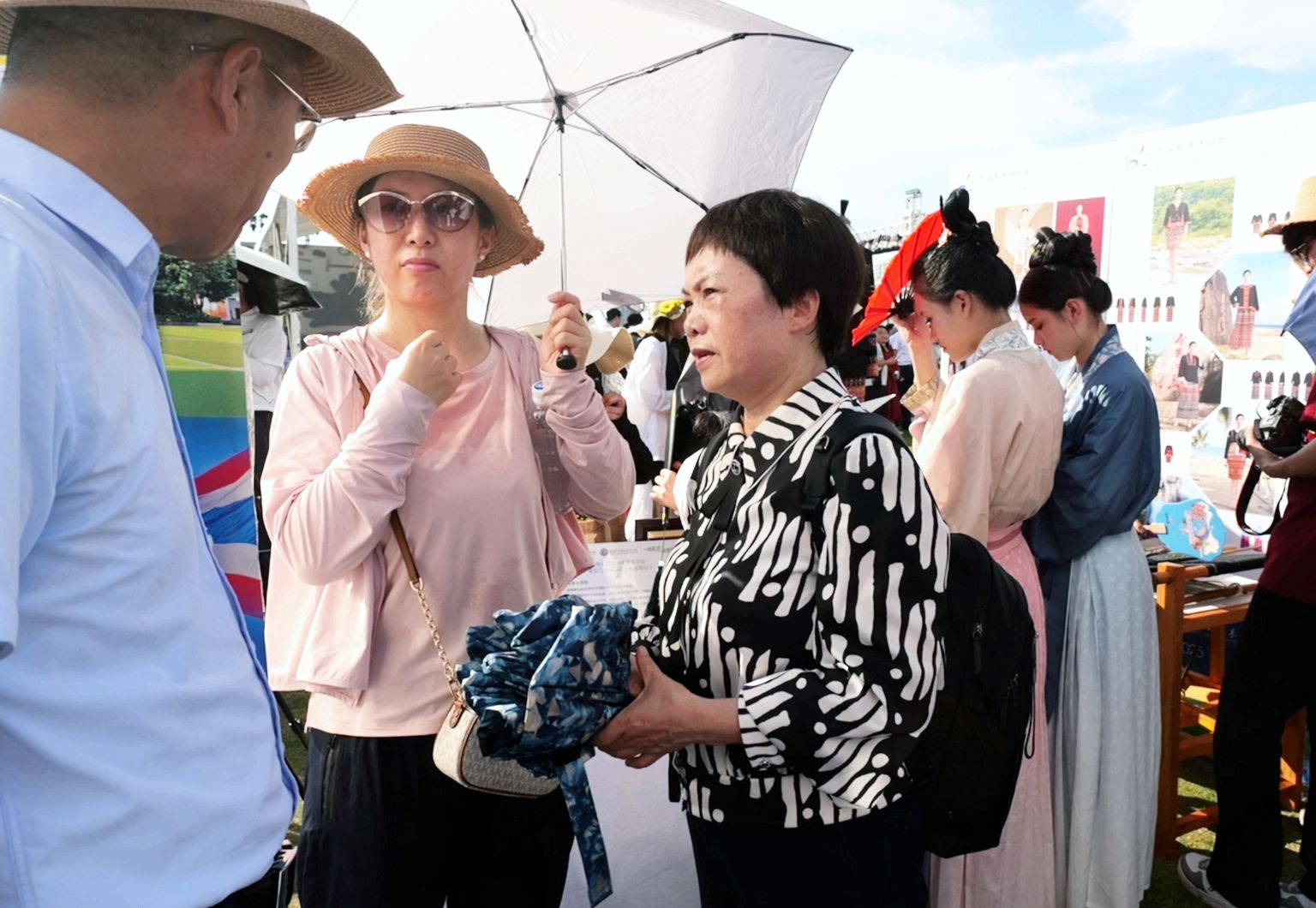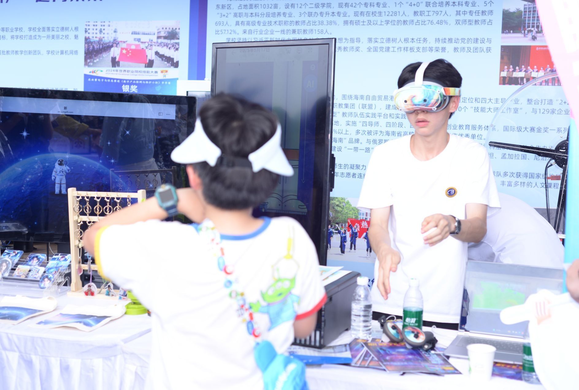 人文艺术学院服装与服饰设计专业技能展示区让大家亲自体验黎族织锦,感受千年非遗技艺的魅力。充满黎锦元素的现代服饰作品,体现了技艺的传承和职业教学的创新实践。DIY帽子、端午节香包、五彩绳……市民们热情高涨、积极参与其中,满载而归,收获了琳琅满目、丰富多样的民族风特色小礼品,现场气氛热烈。