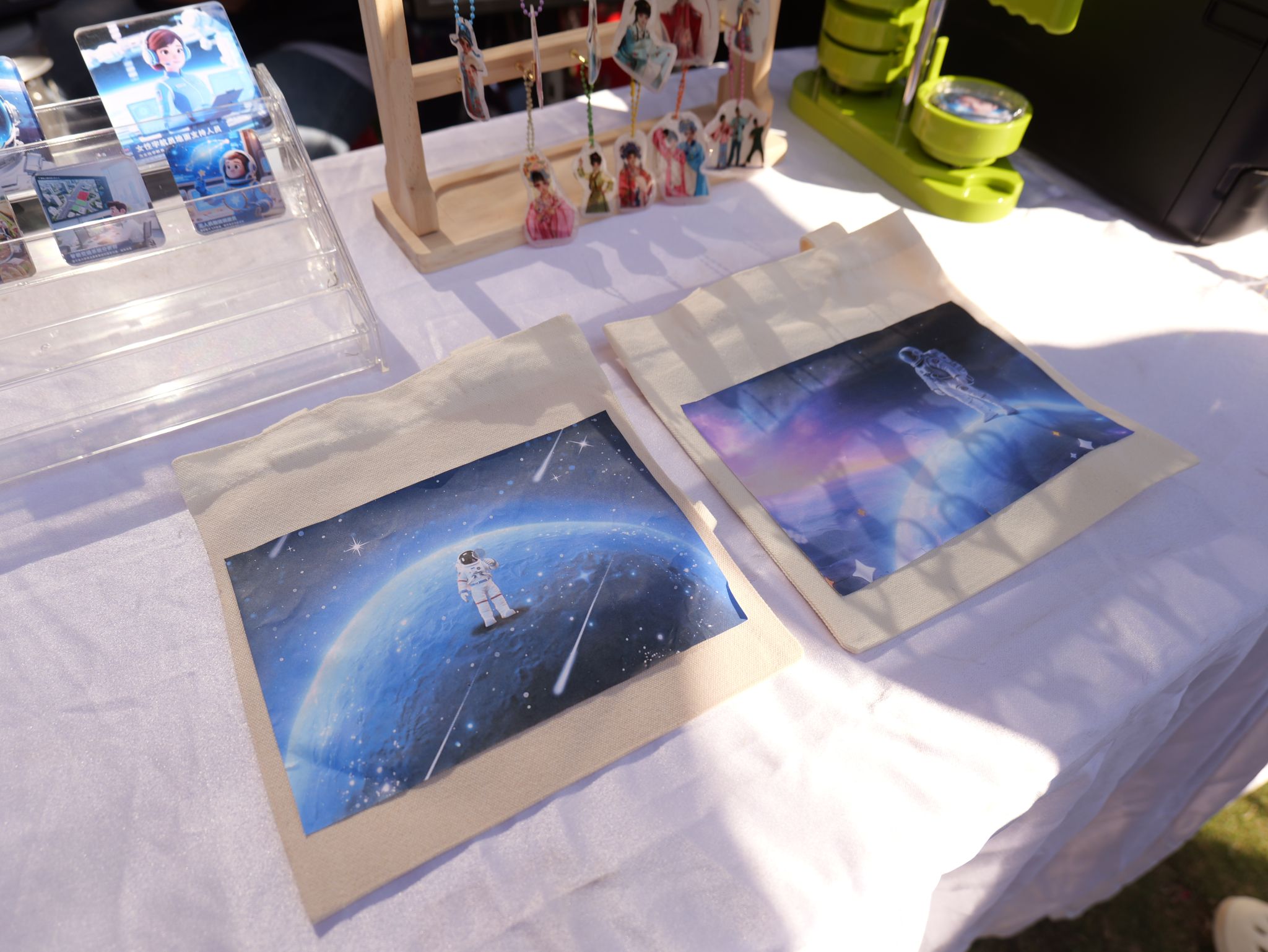 人文艺术学院带来了AIGC融媒触媒互动体验项目,拍照上传系统,可以将自己的人像跟虚拟场景融合,形成个性化的数字艺术作品,趣味十足。还可通过打印设备,现场制作成明信片、冰箱贴、钥匙扣等文创产品,充分展现了AI技术在文创产业的应用,展现了前沿的教学成果。