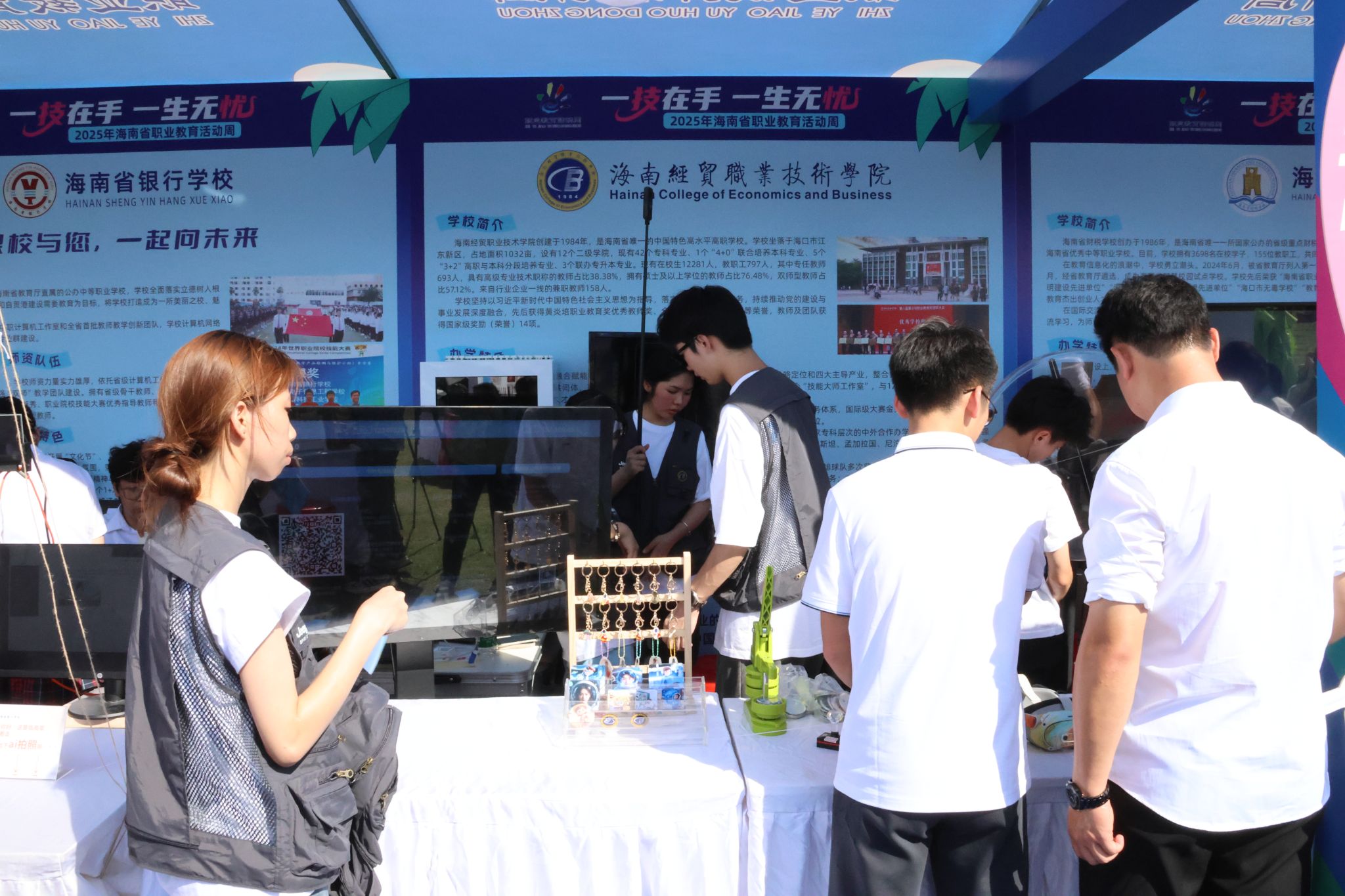 2025年5月17日,全省职教周活动展示在云洞图书馆广场举行。bv伟德源自英国始于1946师生们在展位上展示特色项目,大秀专业技能。市民们积极参与现场互动,为海经贸师生们的专业职业素质和精彩职业技能点赞。