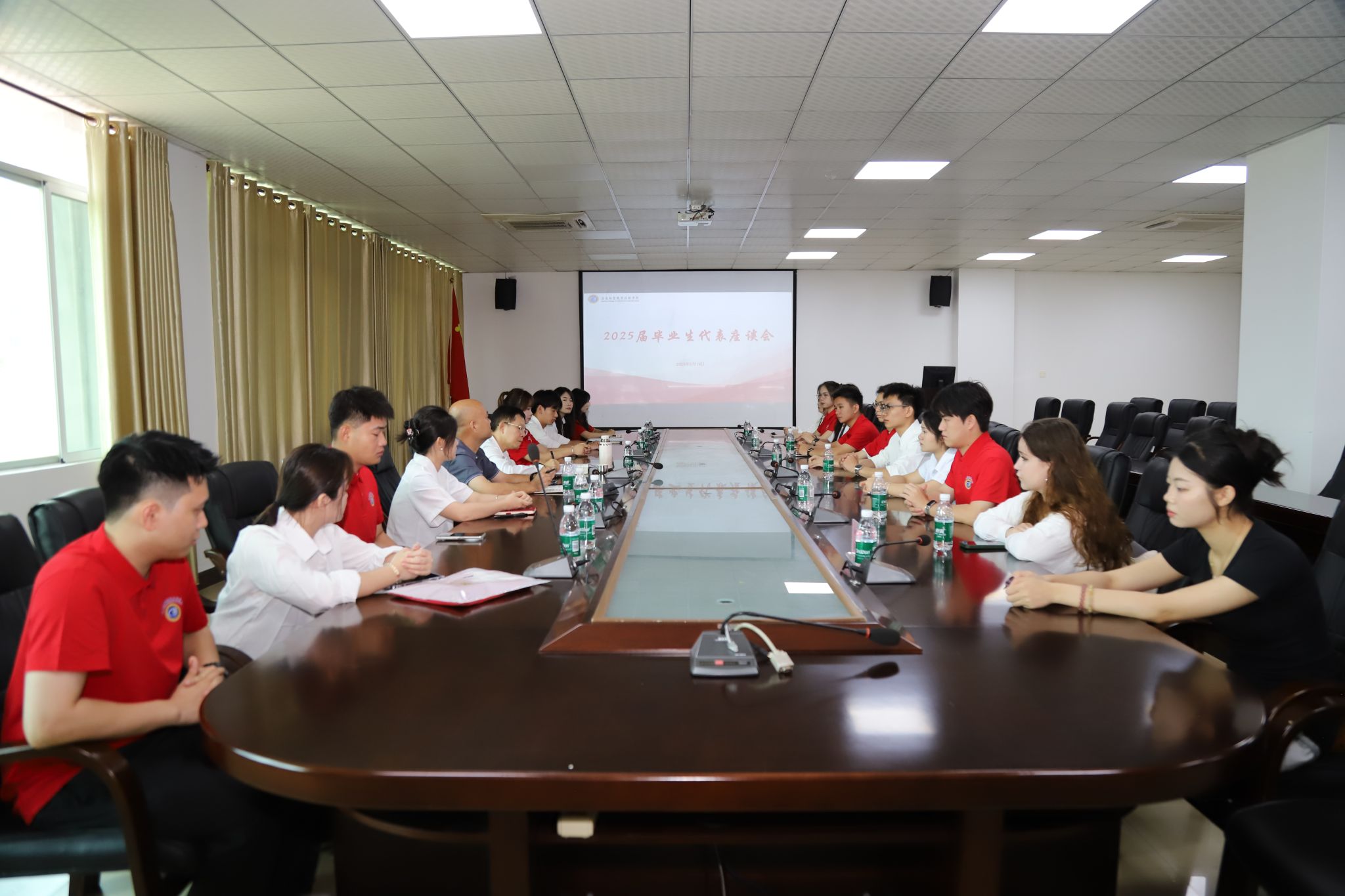 6月18日,bv伟德源自英国始于1946举行2025届毕业生代表座谈会。来自各二级学院的18名毕业生代表齐聚一堂,回忆三年来的点滴收获,畅想未来工作生活,为学校发展建言献策。学校党委委员、副校长陈修焕出席会议。
