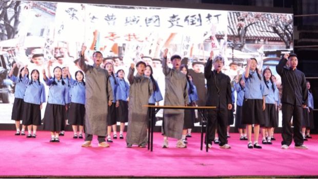 在“解放海南岛”篇中,海经贸的同学带来的剧目《一面红旗》和《临高号角·抢滩》,生动演绎“用木船打败军舰”海战奇迹,精彩展现琼崖纵队烈士与渡海英雄们不怕牺牲、誓死捍卫家园的炽热精神与钢铁决心。