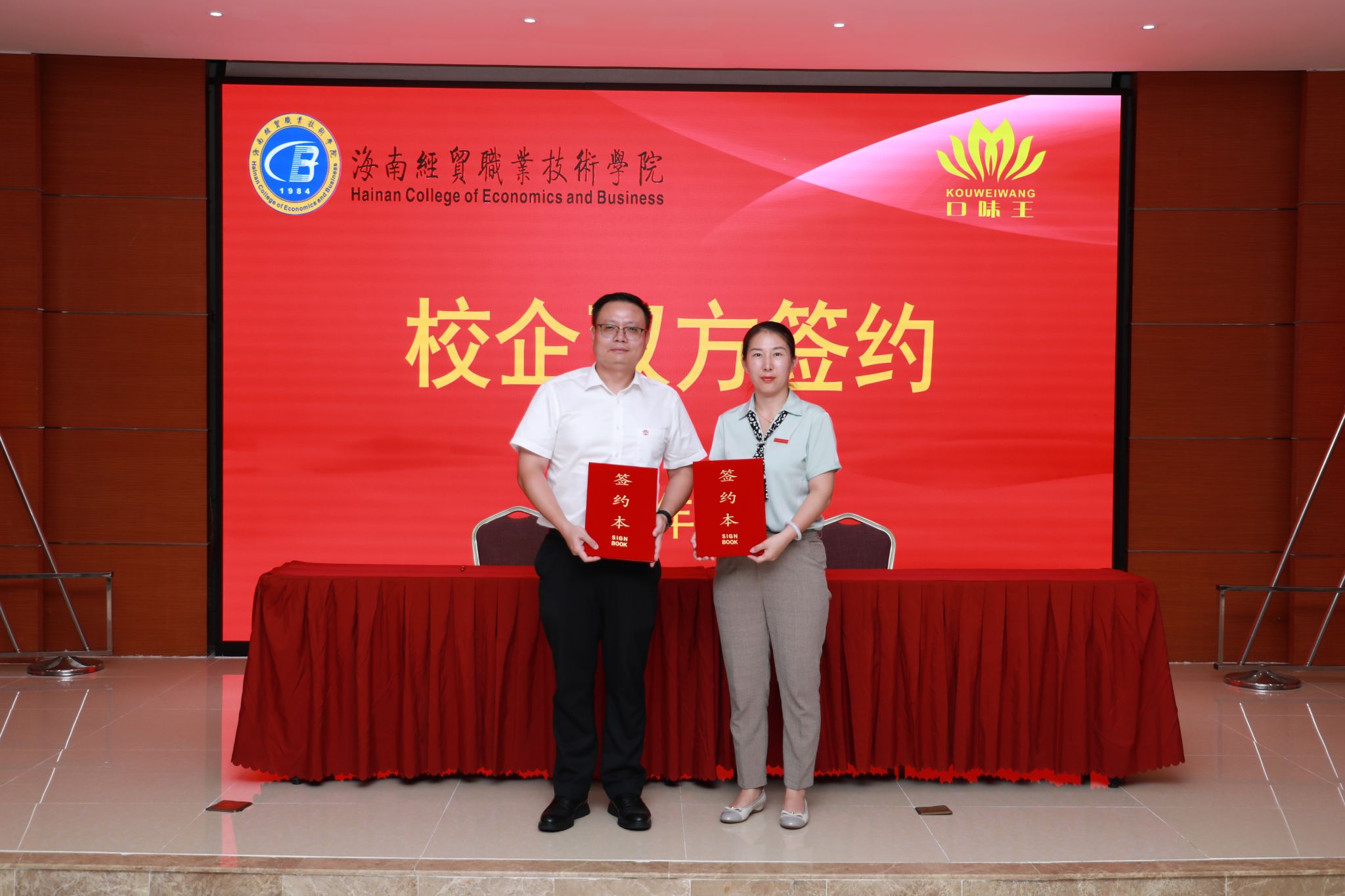 签约仪式前,校企双方举行了座谈会。海经贸党委副书记、校长崔昌华出席座谈会,他详细介绍了学校的基本情况,并表达了深化合作的期望。他说,希望在人才培养、师生交流、实习就业等多个领域与企业开展深度合作,共同培养适应行业发展趋势的高技能人才,为海南自贸港建设发展贡献力量。口味王集团经营管理委员会常委、人资中心总监兼中心政委郑江群介绍了企业的基本情况。他表示,此次与海经贸的合作是企业在海南开展的首个校企合作项目,意义重大。企业将以订单班为依托,与学校联合培养实用型专业技能人才。未来,双方还将在产学研合作、课程开发、实习基地共建等方面开展务实合作,实现资源共享、优势互补。
