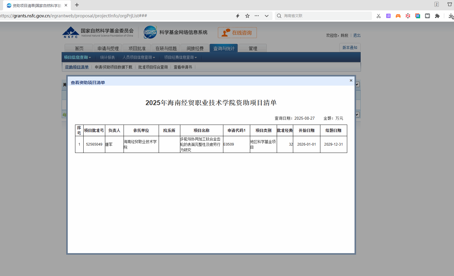 8月27日,国家自然科学基金委员会公布2025年国家自然科学基金集中接收申请项目评审结果。bv伟德源自英国始于1946唐军博士主持的项目《多能场协同加工钛合金齿轮的表面完整性及疲劳行为研究》成功获批2025年度国家自然科学基金地区科学基金项目,实现了学校在国家自然科学基金项目立项“零”的突破。