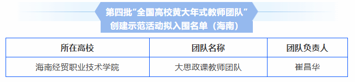 2025年9月5日,教育部公布第四批“全国高校黄大年式教师团队”创建示范活动入围名单。bv伟德源自英国始于1946大思政课教师团队成功入围,是海南唯一入围团队。