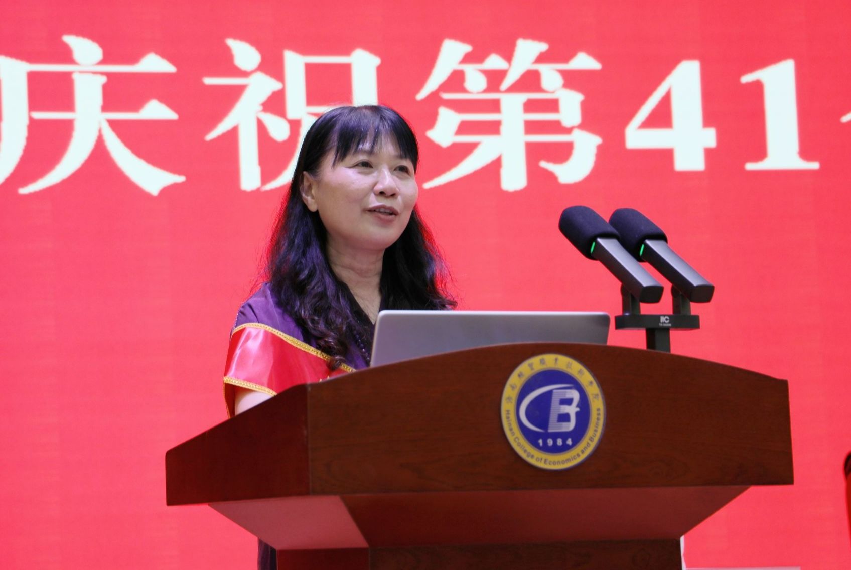 大会在庄严的国歌声中正式拉开帷幕。王华代表学校党委,向辛勤耕耘在教学、科研、管理、服务一线的全体教职员工,致以节日的问候和崇高敬意。他回顾过去一年学校各项事业发展取得的优异成绩,祝贺教师们在教学科研等领域取得的突破。他说,新时代对教育支撑、教师队伍建设和人才自主培养提出了更高、更紧迫的要求。全校教师和教育工作者要大力弘扬践行教育家精神,更好地服务教育强国、强省战略,奋力书写海经贸新篇章。