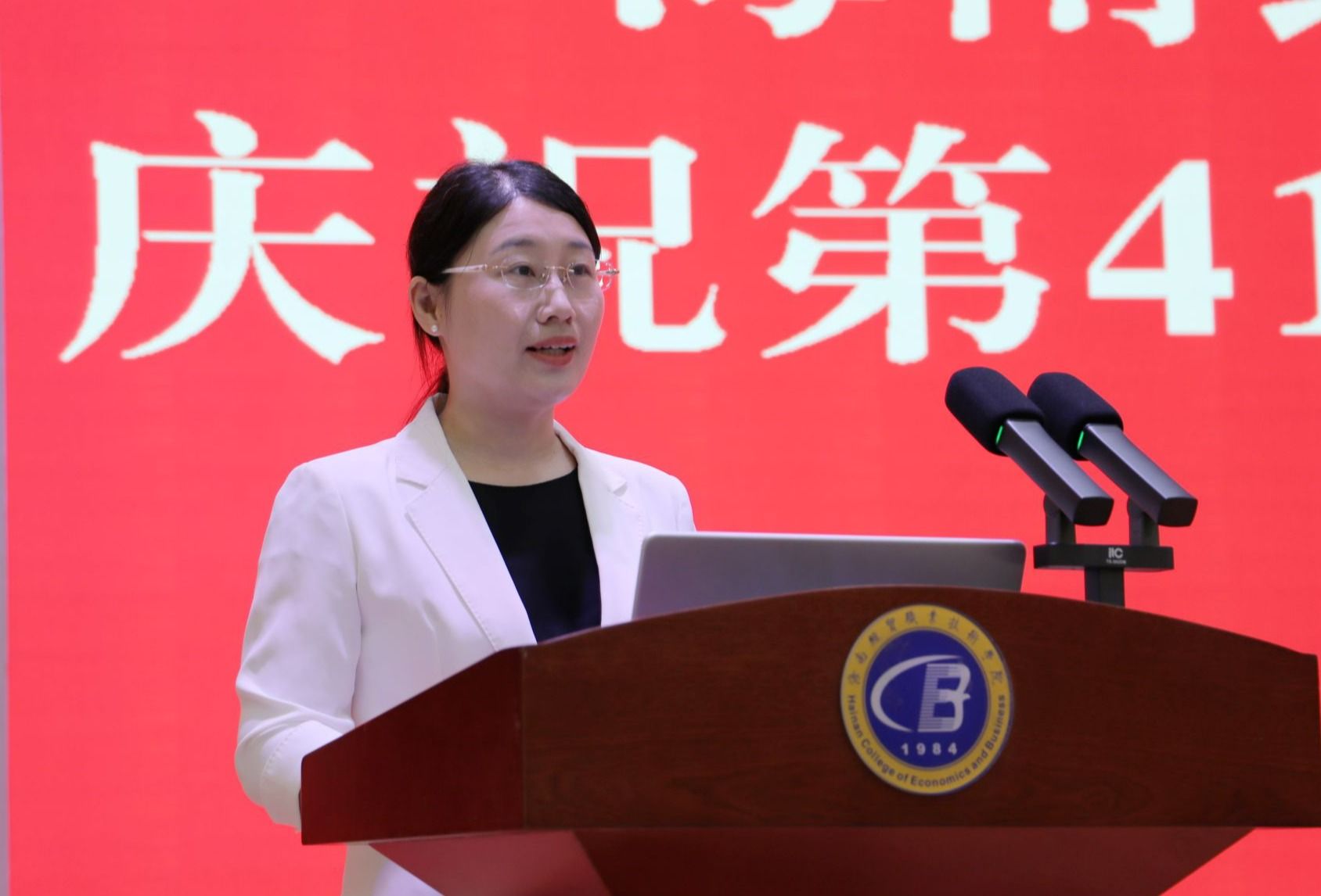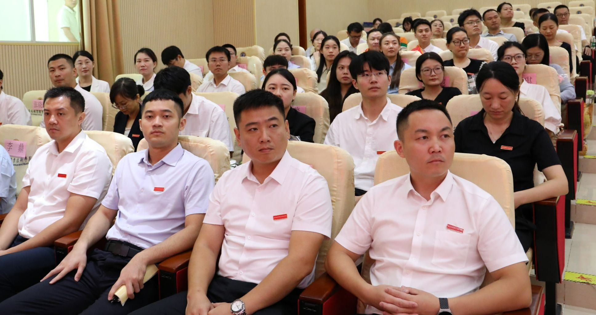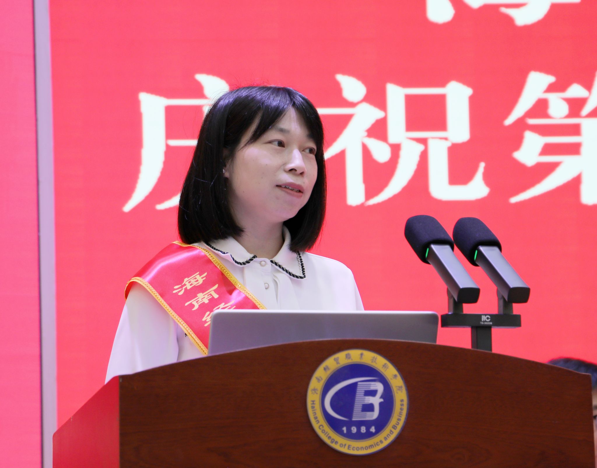 汇聚新力量,共赴新征程。从去年9月至今,全校共迎来28名新教师,为学校发展注入了新鲜血液。为欢迎他们加入海经贸大家庭,学校特在表彰大会上举行入职仪式。校领导为新入职教师代表佩戴学校徽章。