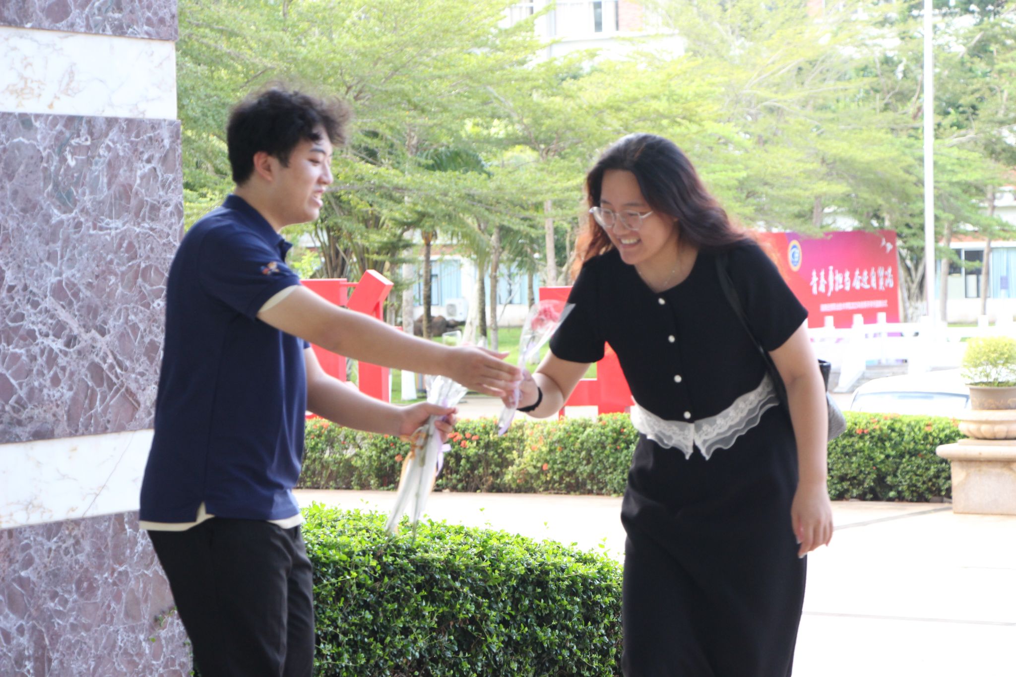 校学生会同学为老师们送花