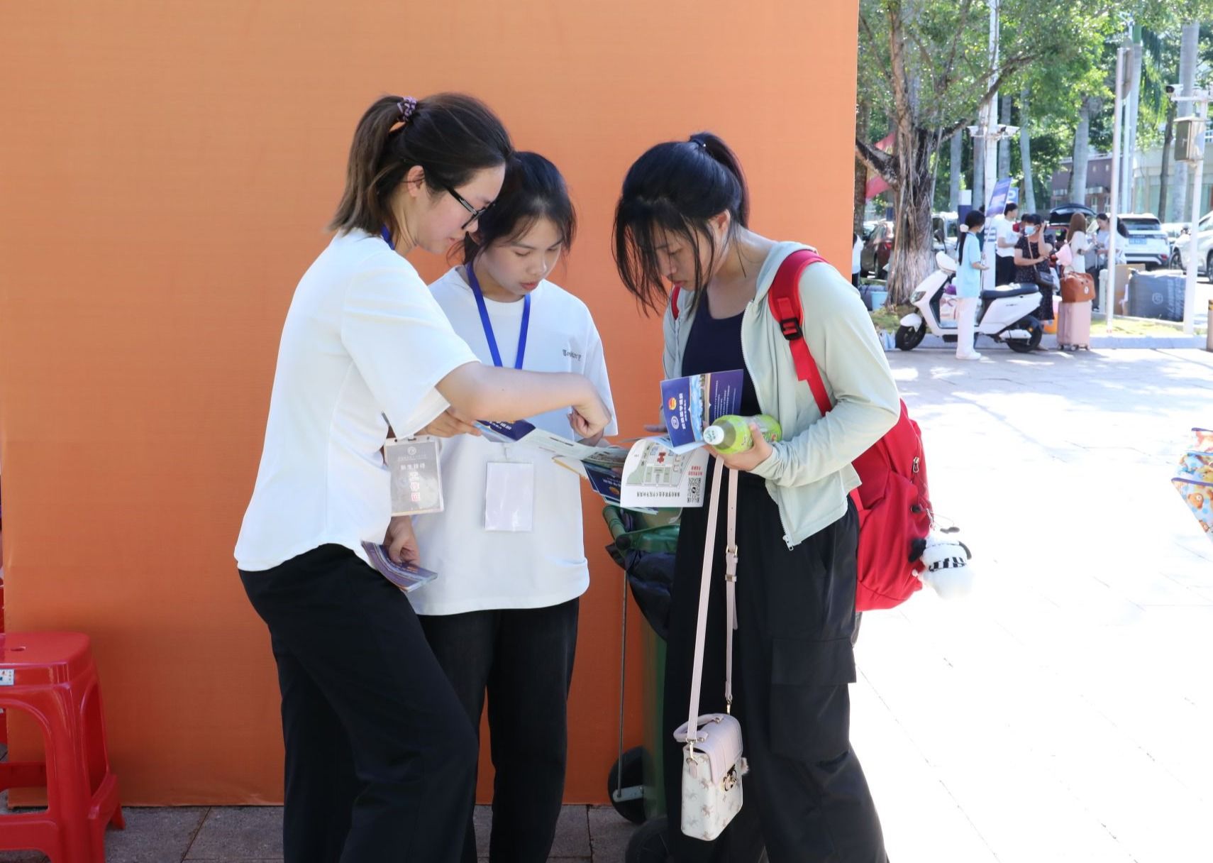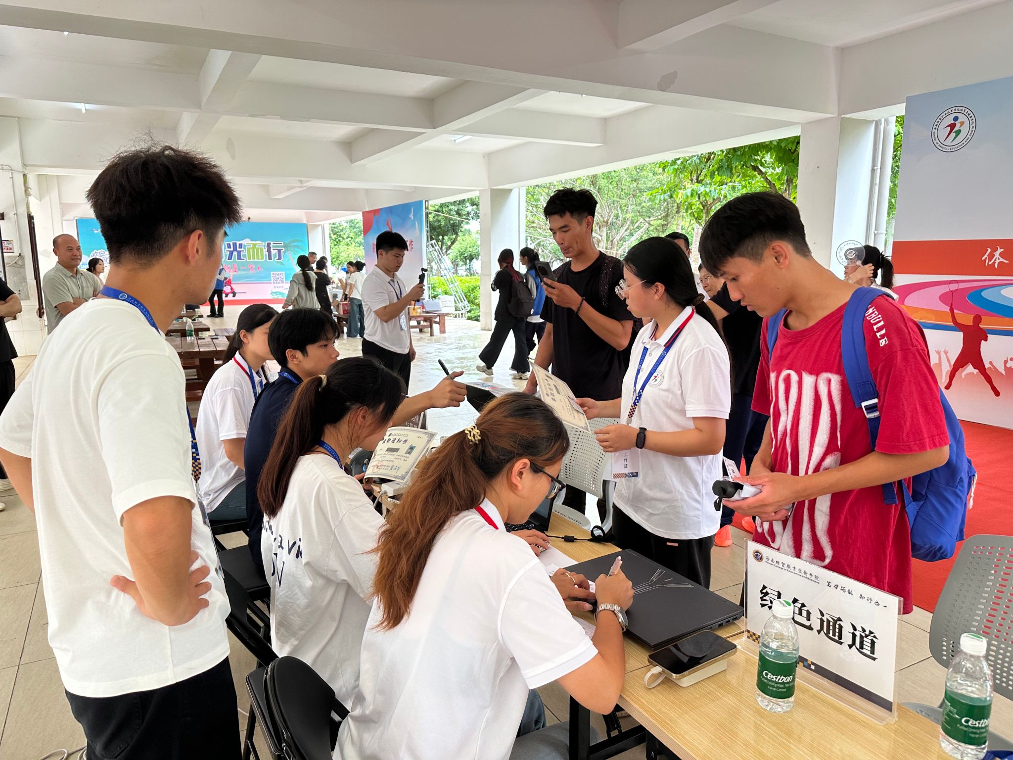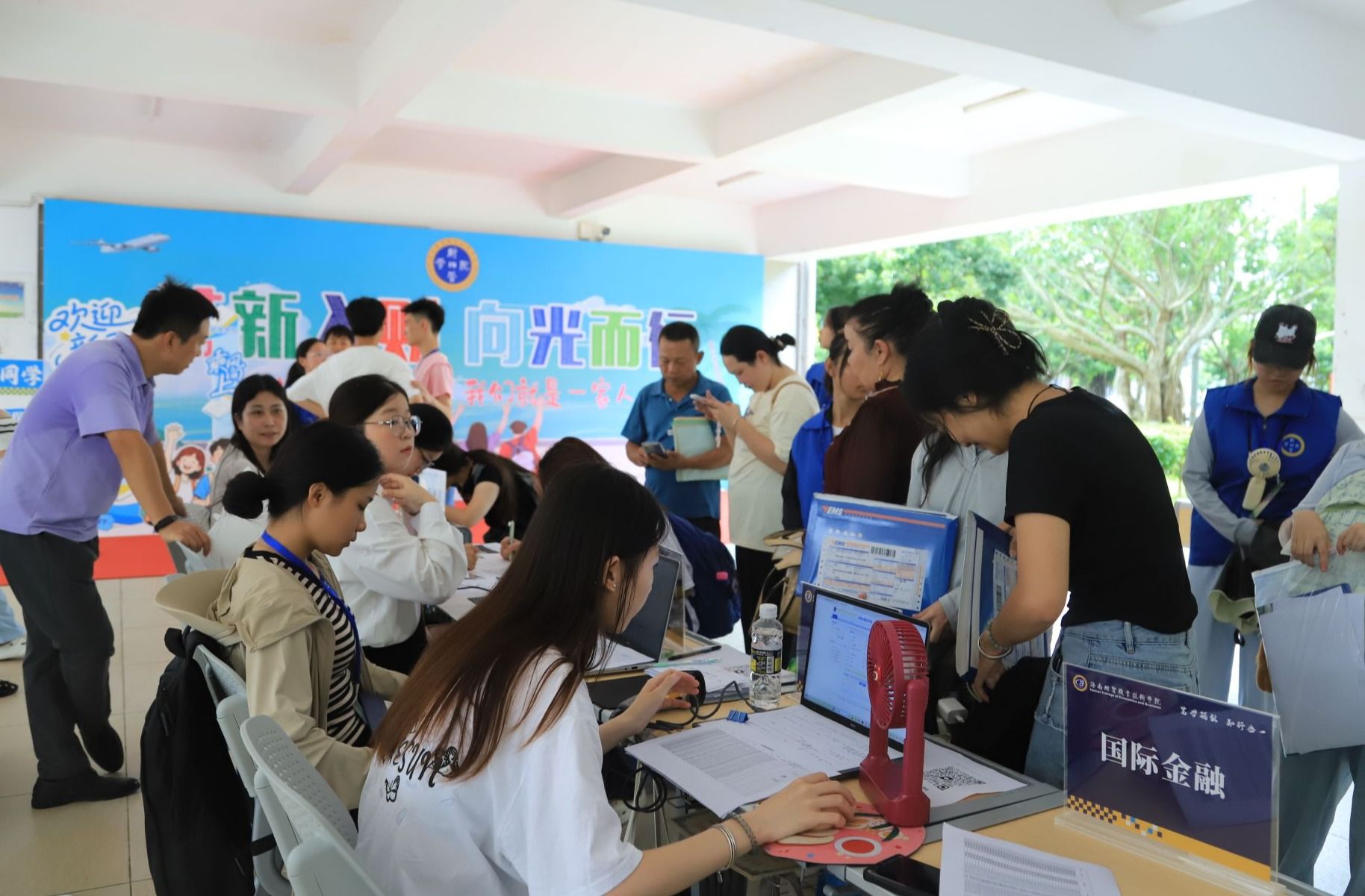 校园外,志愿者们早早来到美兰机场、高铁站、海口火车站、汽车站等接站点,为远道而来的新生及家长送来了最贴心的“见面礼”。校园内,志愿者们手举指示牌和引导标识,为新生们指引自己所属的学院和专业报到点。各学院迎新工作人员热情周到,耐心地为新生办理入学手续,解答各种疑问,帮助新生们搬运行李、入住宿舍。
