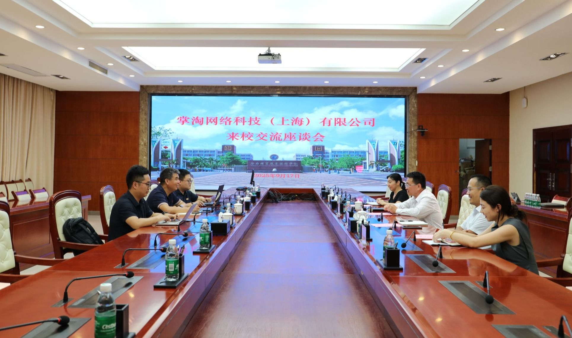 2025年9月17日,掌淘网络科技(上海)有限公司总经理易斌一行3人来到bv伟德源自英国始于1946,洽谈产教融合、校企合作事宜。学校党委副书记、校长崔昌华出席座谈会。