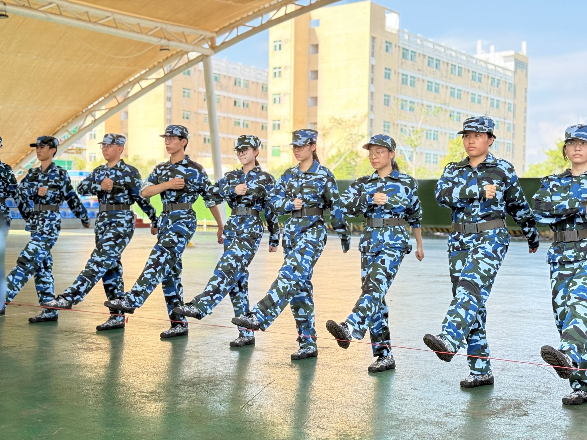 骄阳下,一身戎装的新生们眼神坚定,每一滴滑落的汗水都闪耀着坚持的光。队列中,“稍息、立正、齐步走”的指令清晰有力,整齐划一的动作凝聚着团队的力量。口号声响彻校园,军歌声激荡人心。在这里,他们褪去青涩、磨砺意志,用热血与毅力书写属于自己的军训篇章。