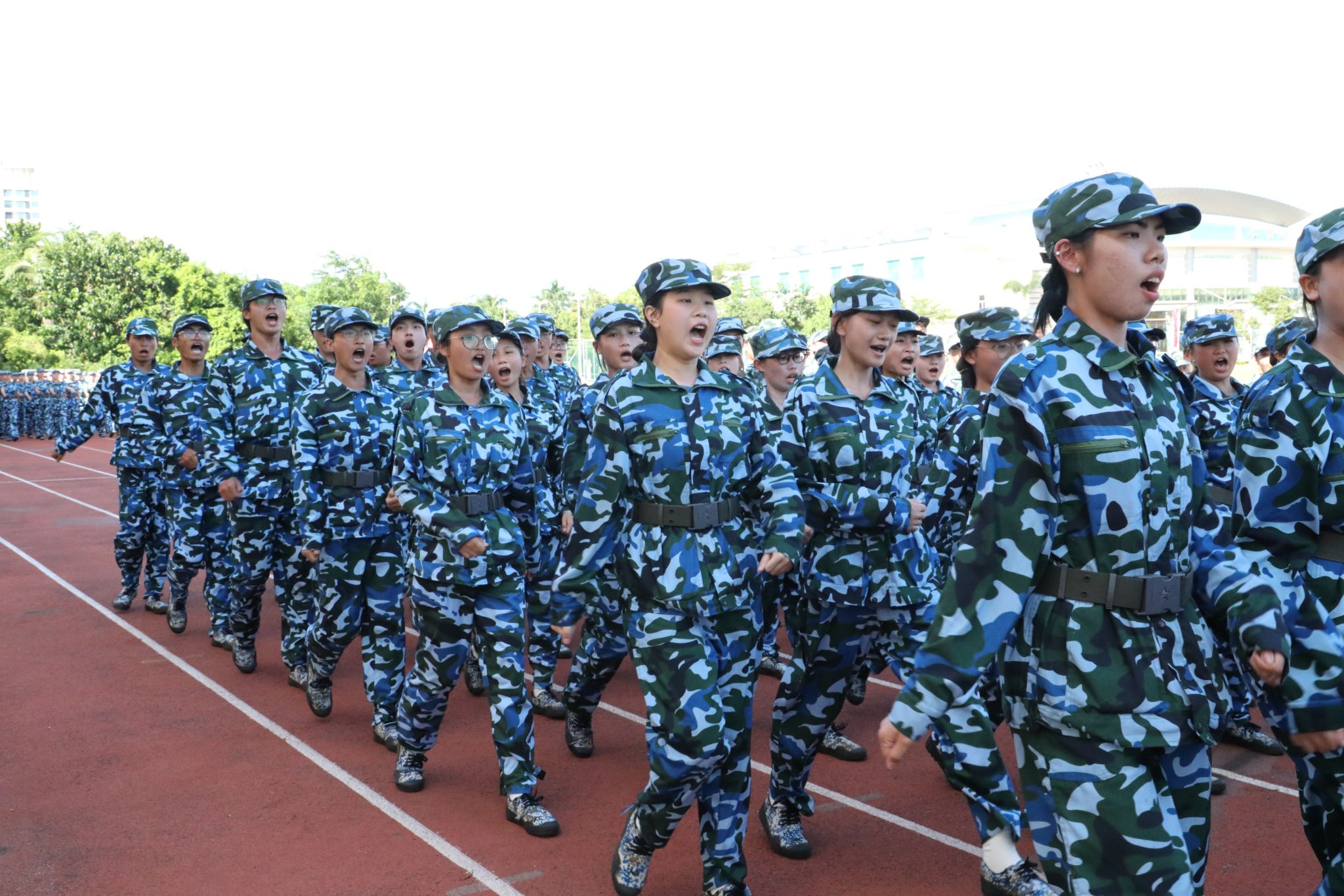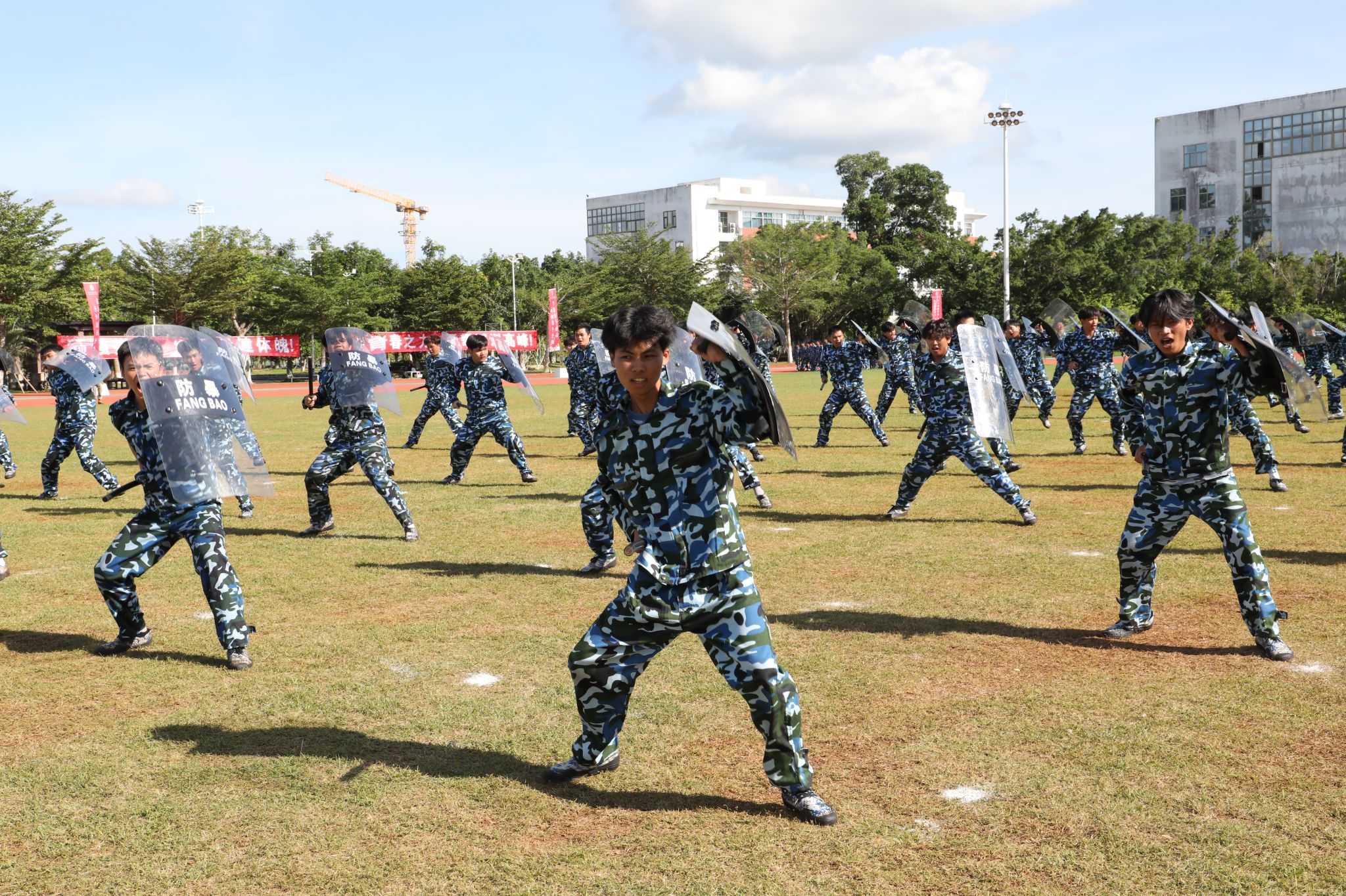 新生代表们还进行了刺杀操、旗语操、擒敌拳、警棍盾牌操、战术等军事科目操练。他们口号激昂响亮,动作整齐划一,气势磅礴雄伟,精彩表现赢得现场观众阵阵喝彩与掌声。