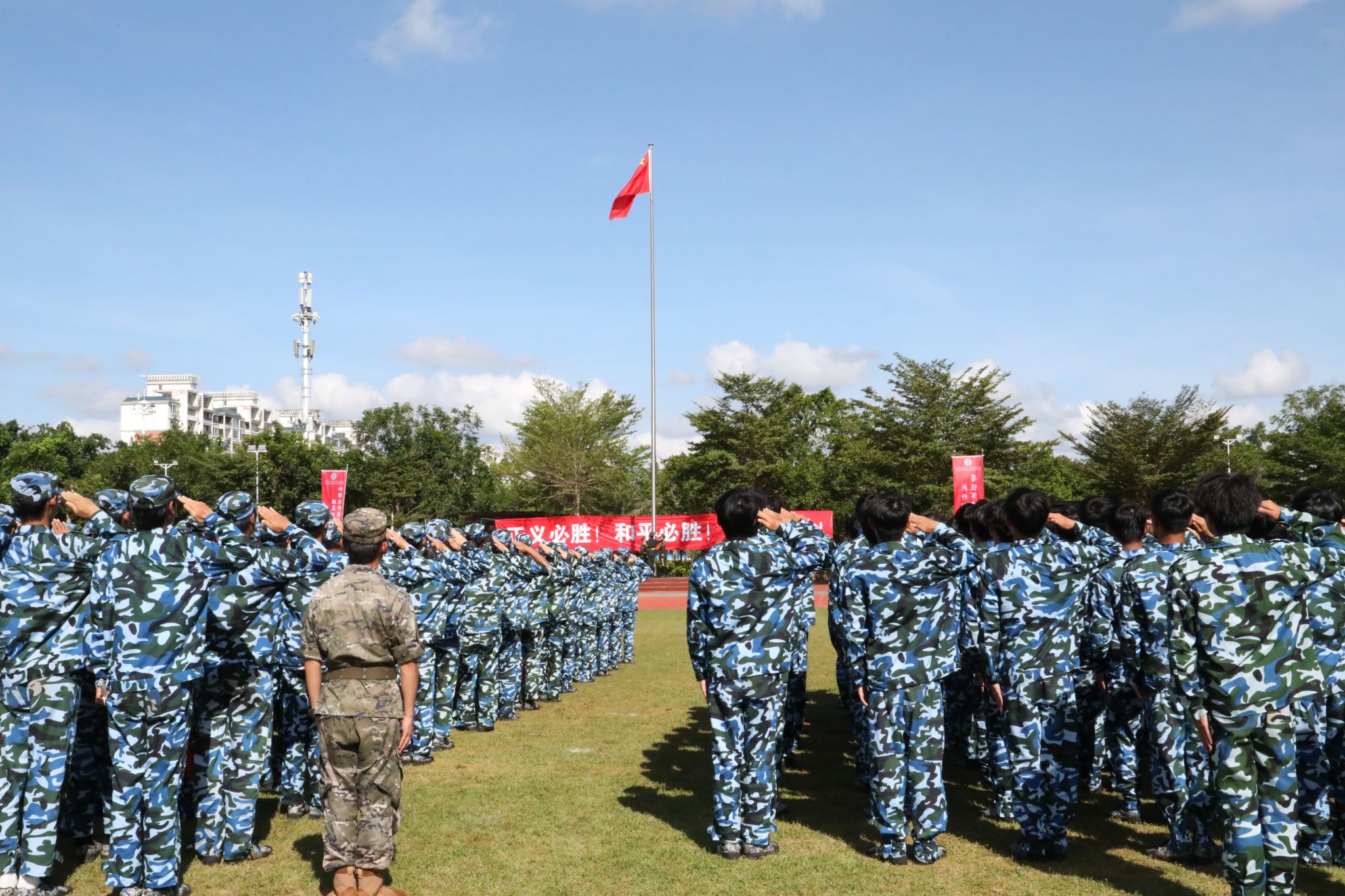 他深情寄语同学们,要传承“听党指挥”的军魂,筑牢理想信念的“根”与“魂”。将青春抱负融入服务国家战略、助力自贸港建设的时代洪流,做一名有理想、有担当、有格局的海经贸人。要发扬“能打胜仗”的作风,锤炼过硬本领的“技”与“能”。既要坐得住“冷板凳”,夯实理论基础,又要进得了“实训室”,练就过硬实操本领,努力成为知识结构优、实践能力好、创新意识强的高端技术技能人才。要永葆“作风优良”的传统,涵养团结协作的“和”与“美”。在服务社会中增长才干,努力成为人格健全、身心健康、全面发展的时代新人,用军训赋予自己的宝贵精神财富书写精彩人生华章。