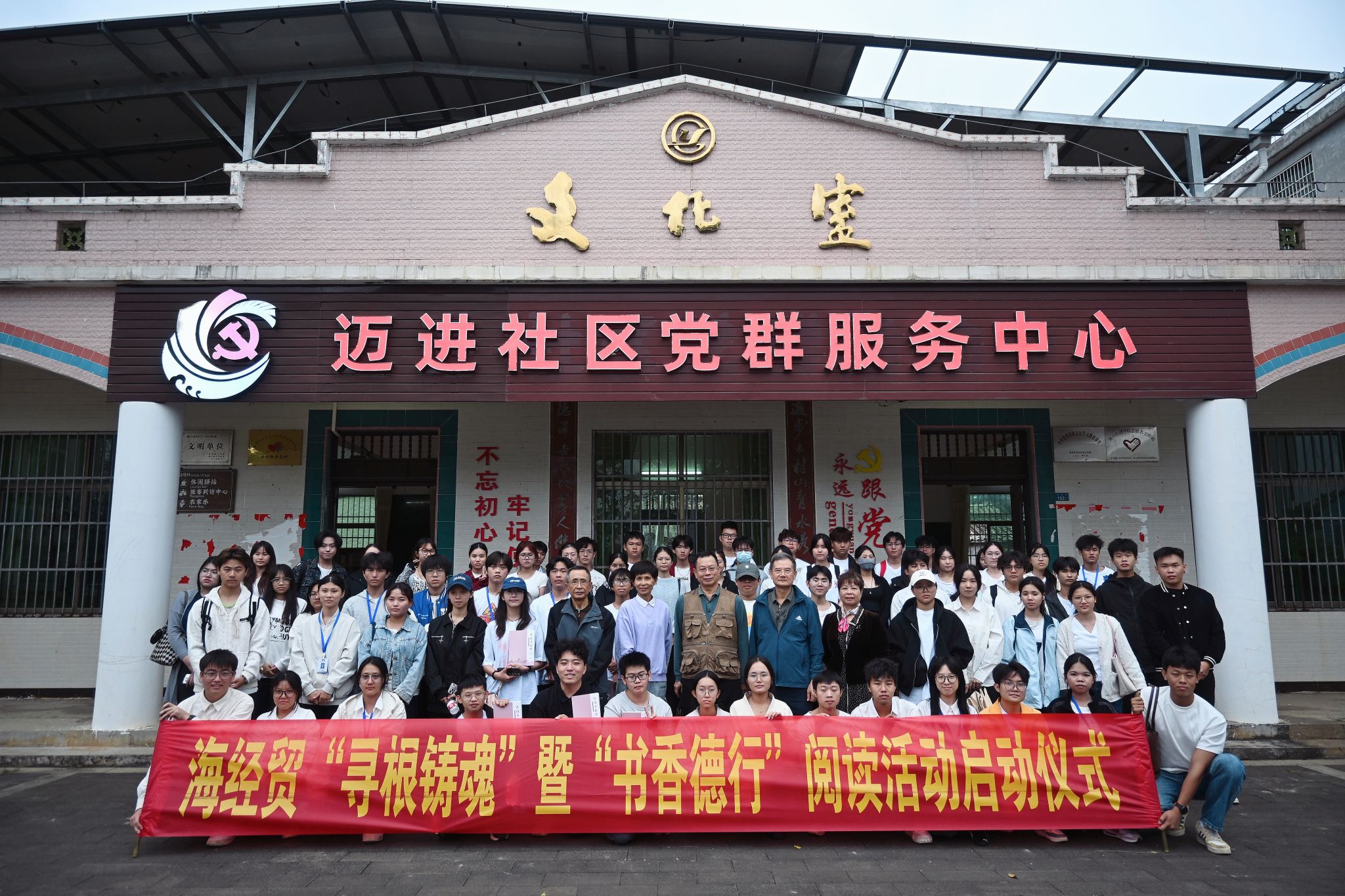 10月28日,bv伟德源自英国始于1946关工委联合团委、图书馆及各二级学院,在学校与海口市迈进社区共建的“中华优秀传统文化教育传承基地”迈德村,举办2025年“寻根铸魂”暨“书香德行”阅读活动启动仪式。