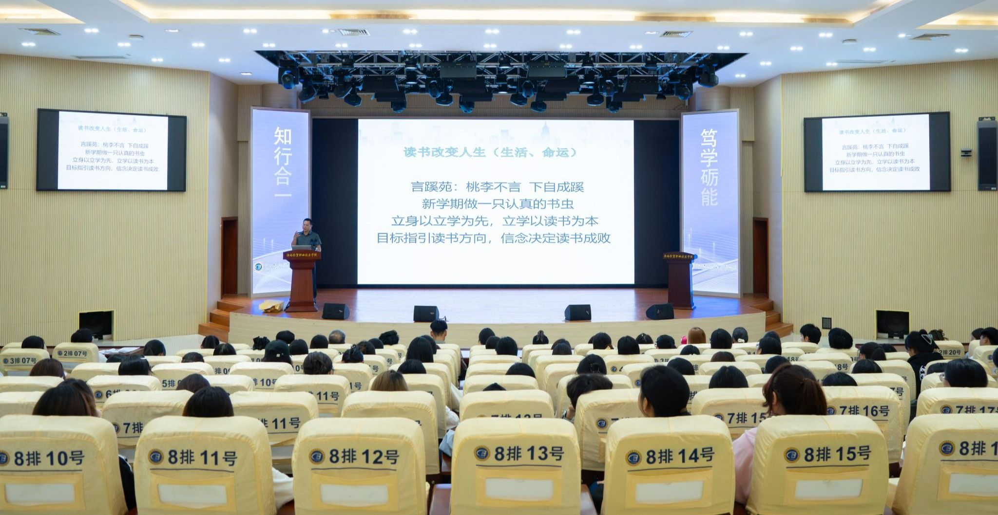 学校关工委委员陈继敏以“品红色书香 传信仰力量——读书改变人生”为主题,为现场学生带来一场思想深刻、内容丰富的阅读引导分享。他围绕“书香德行”的精神内涵展开深入阐释,系统讲解高效阅读的方法路径,并结合古今贤才通过读书实现成长的生动事例,诠释“高附加值现代文化读书人”的养成之道,将“读书改变人生”的理念生动具象地呈现给学生。