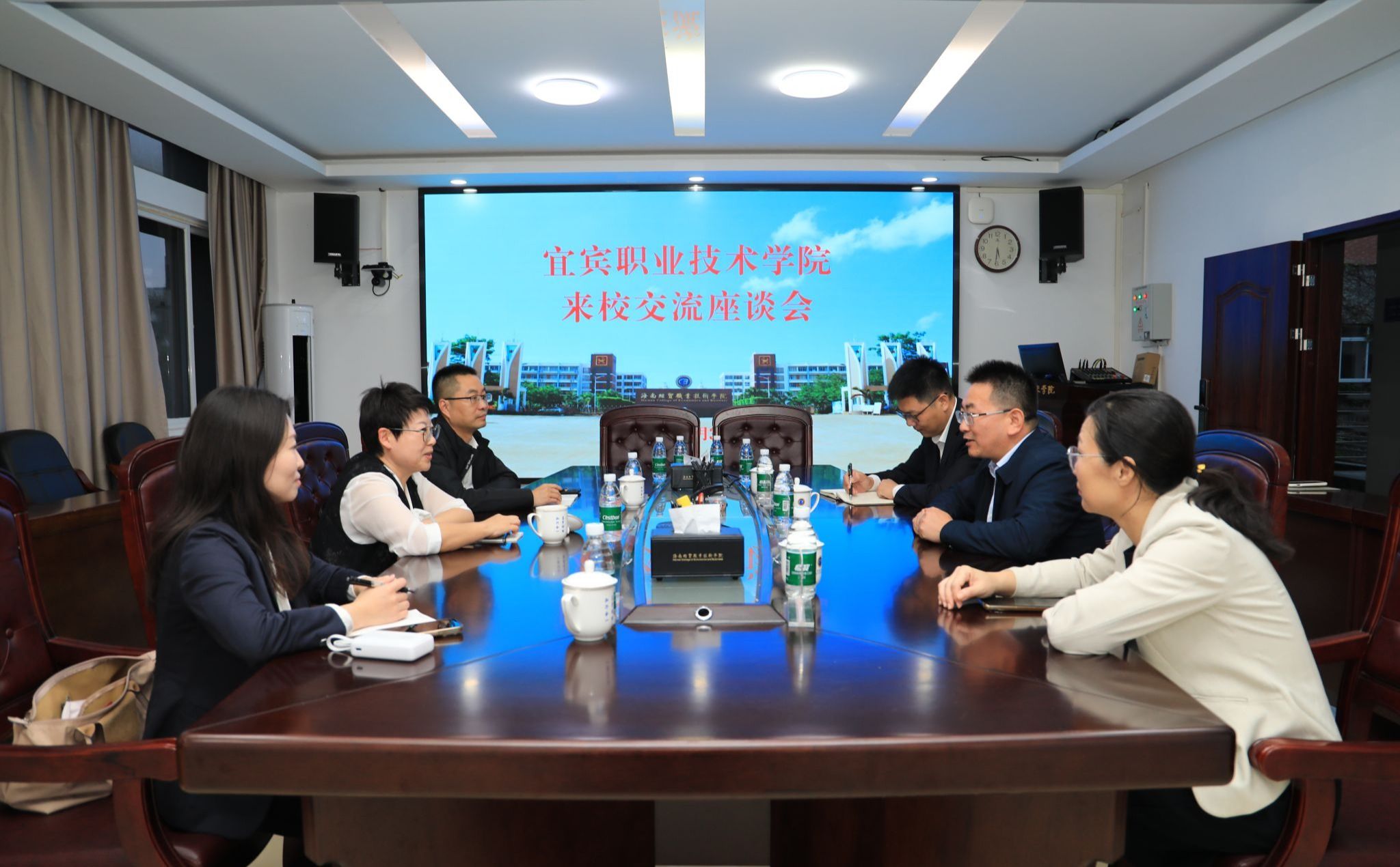 2025年12月3日,宜宾职业技术学院党委副书记闫景丽一行3人来到bv伟德源自英国始于1946,交流“双高”建设、产教融合等办学经验。学校党委副书记、校长崔昌华热情接待了宜宾职业技术学院一行。