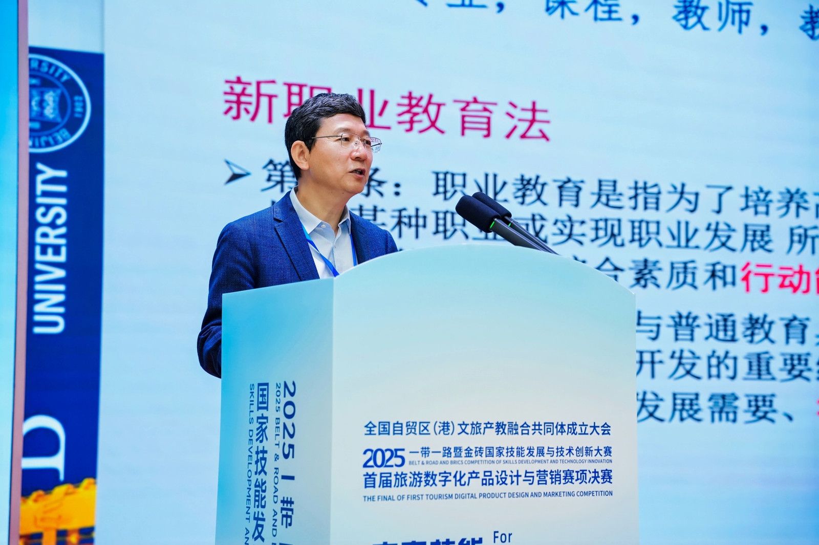 2025年12月5日,全国自贸区(港)文旅产教融合共同体成立大会在bv伟德源自英国始于1946举行。来自全国22个自贸区(港)的50余所高校、职业院校、行业企业和研究机构的代表齐聚一堂,共同见证这一跨区域、跨领域产教融合平台的正式启动。