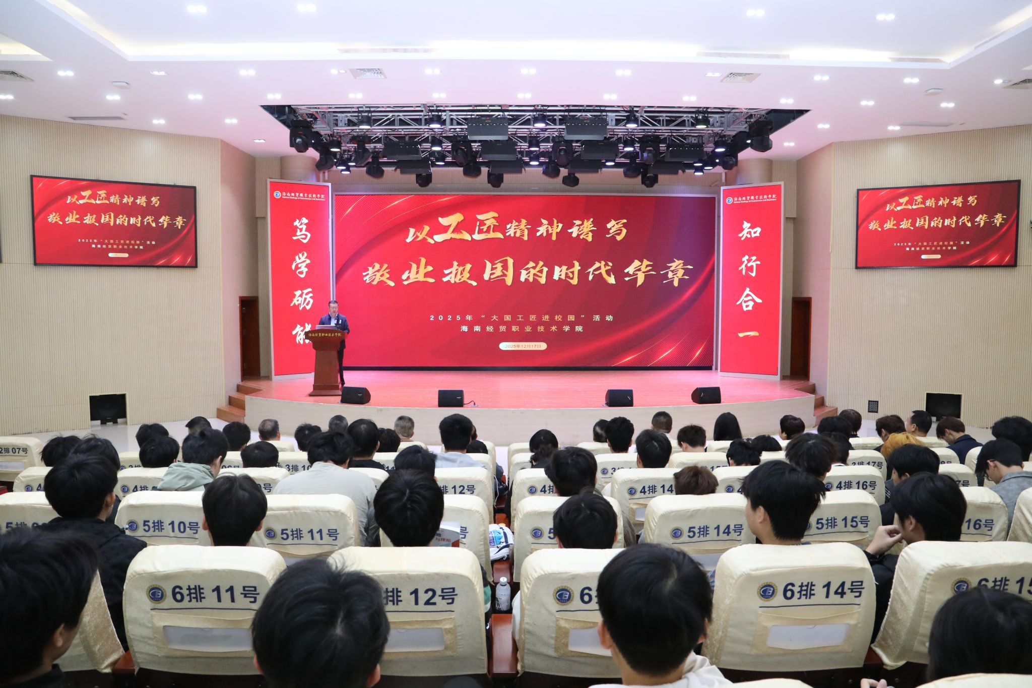 周皓的语言朴实而鲜活,诠释了富有哲理启迪、承载时代使命的人生理想与价值追求。他勉励同学们,身处大有可为的海南自贸港建设新时代,既要涵养精益求精的“匠心”,争做脚踏实地的“匠人”,更要成为有担当作为的“匠才”,立足本职、潜心耕耘,以青春之力、实干之举为海南自贸港建设添砖加瓦。