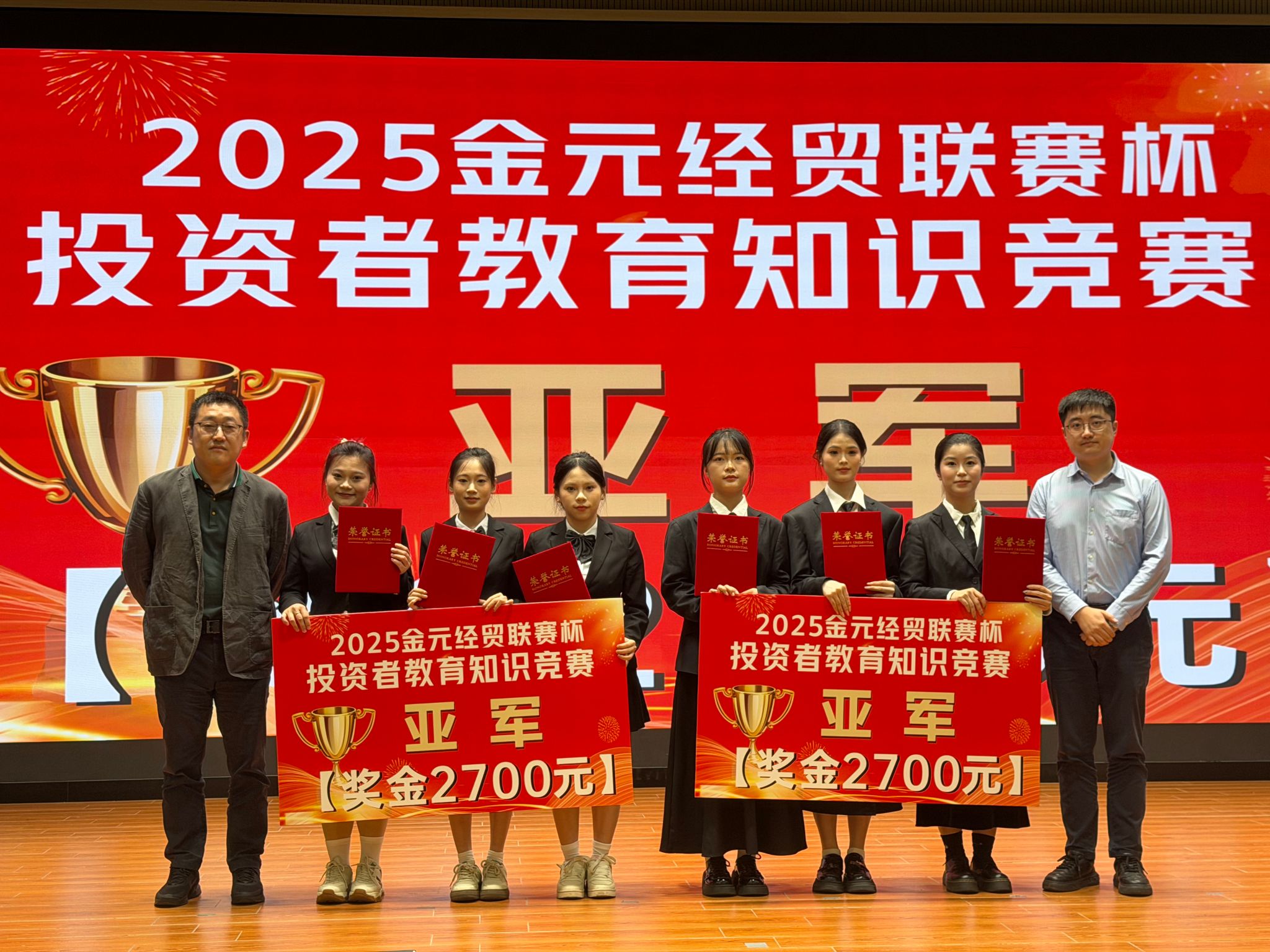 2025年12月22日,在中国证券业协会、海南证监局的指导下,由bv伟德源自英国始于1946与金元证券联合主办的第四届“金元证券杯”投资者教育知识竞赛总决赛在学校图书馆报告厅举行。经过激烈角逐,海经贸学子荣获两个冠军、一个亚军及一个优秀奖。