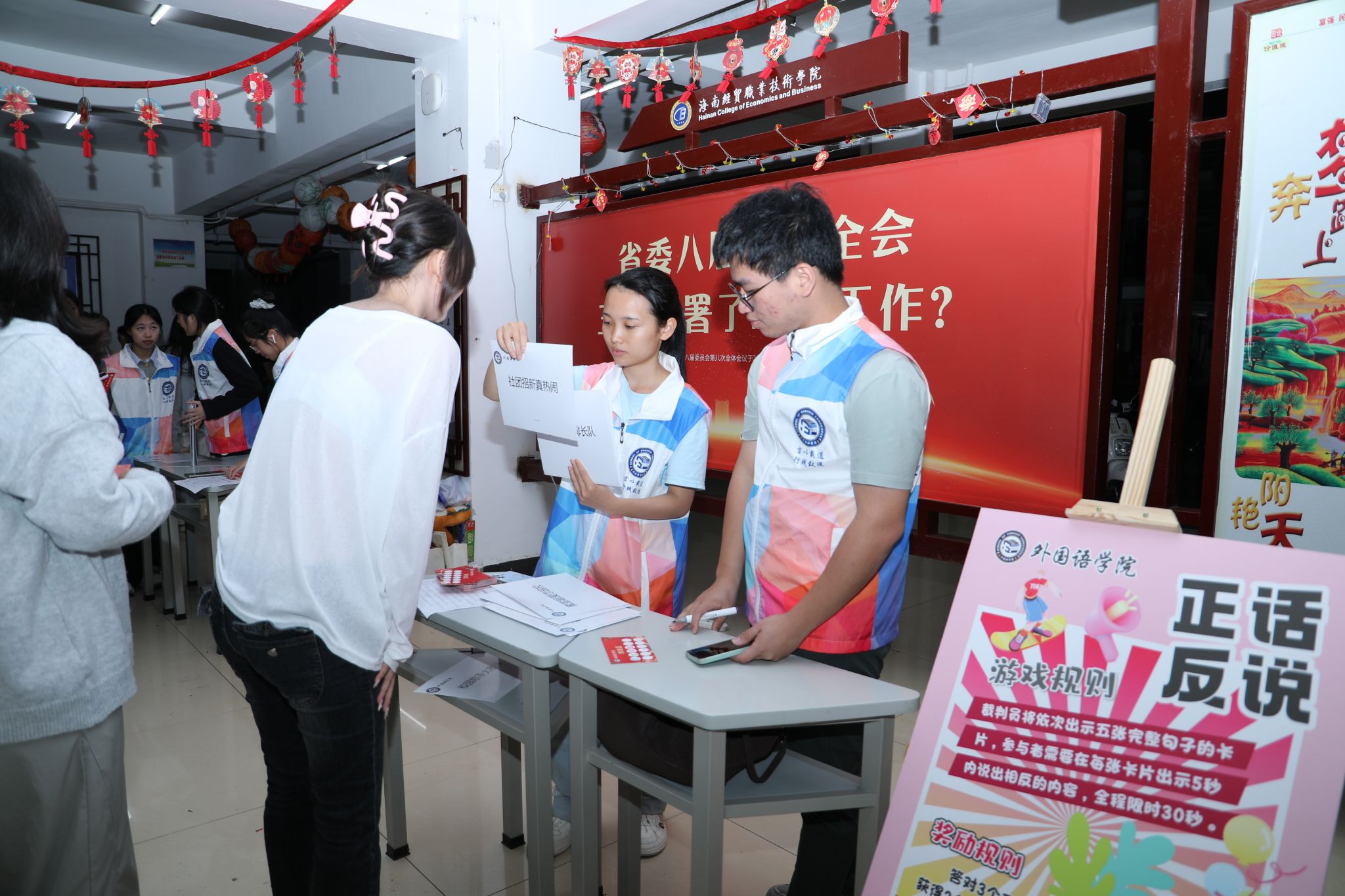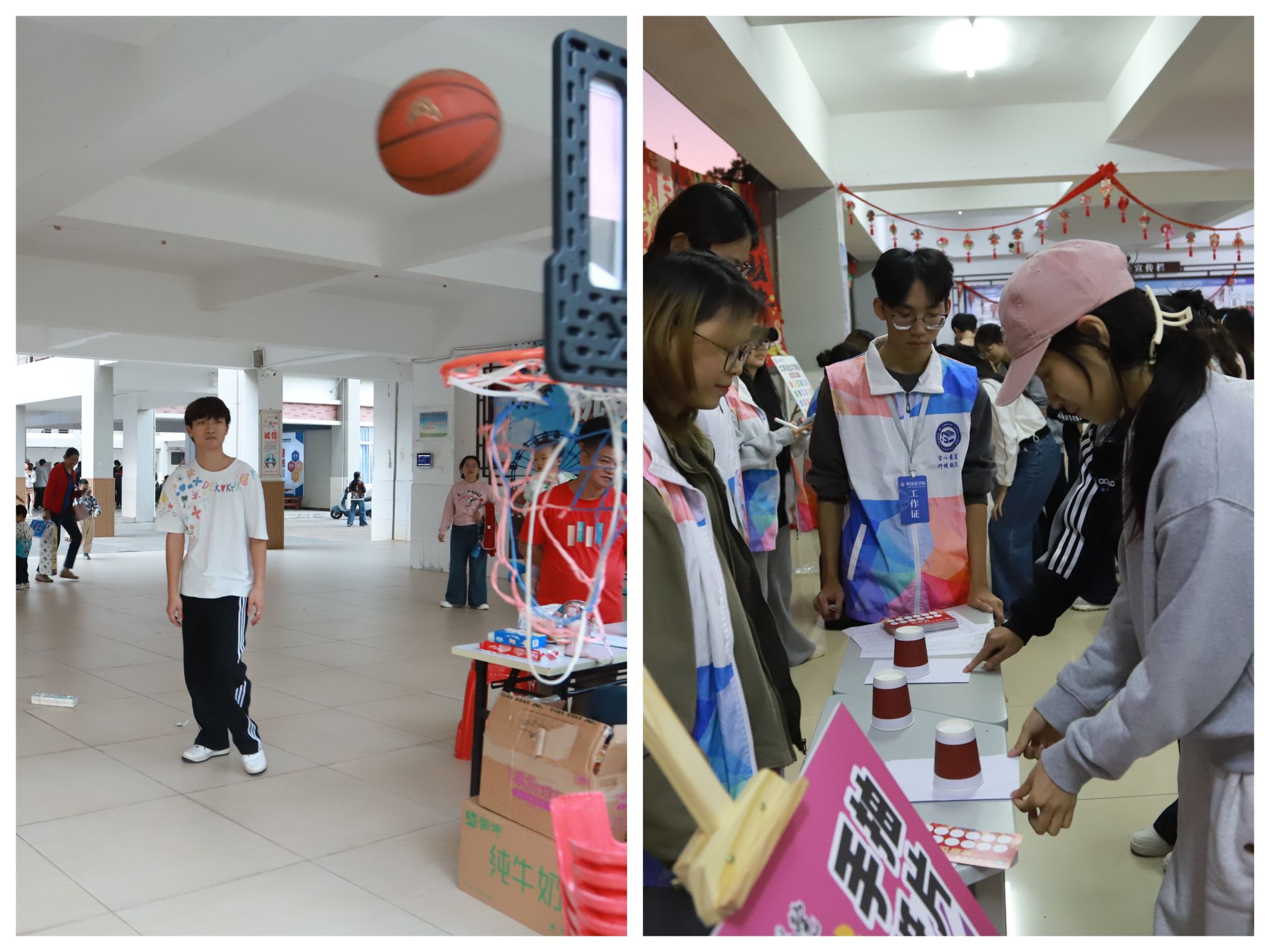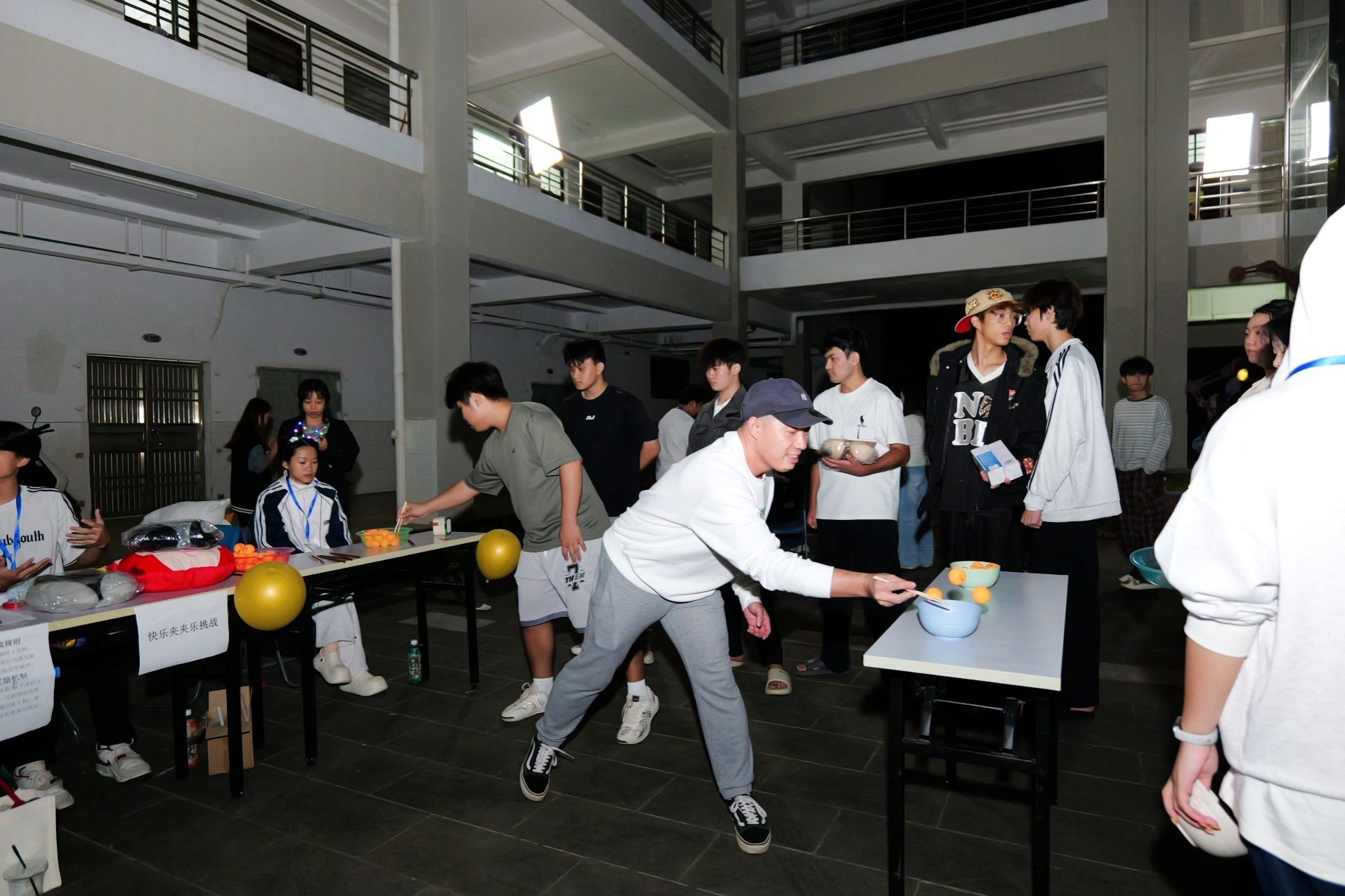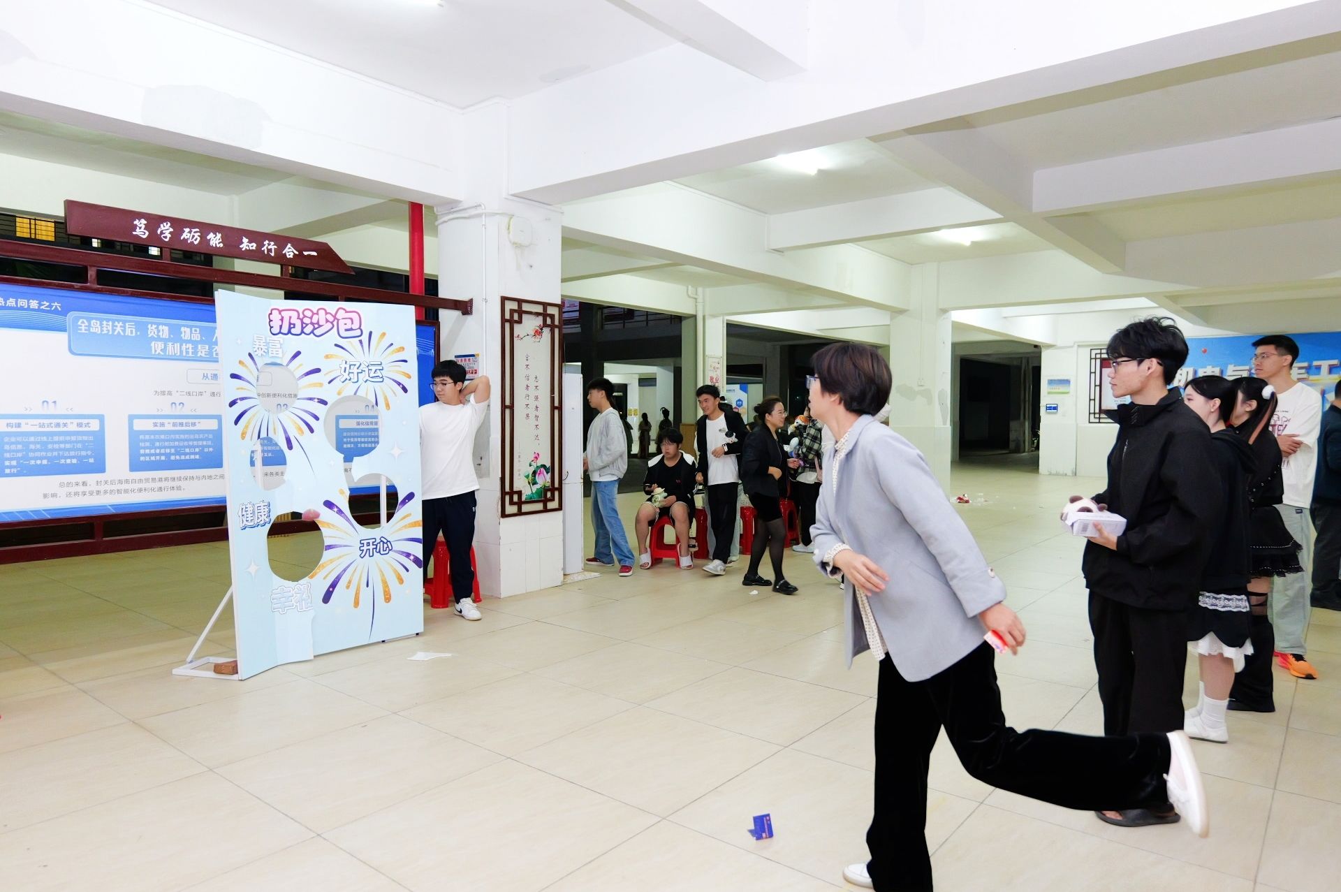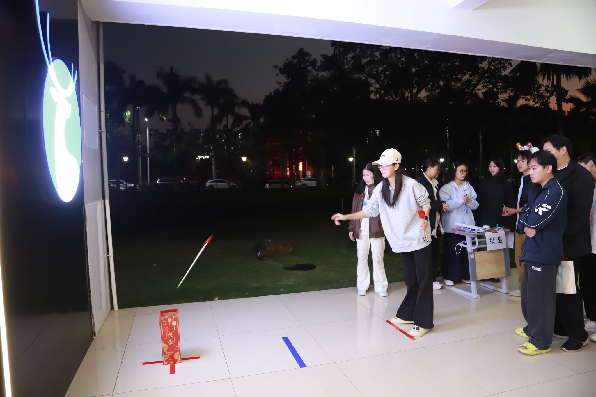 各二级学院还分别设置了各自的分会场,金珠大作战、蒙眼击鼓、你画我猜、漆扇制作、丢沙包、套圈……青春的活力与团聚的温暖在冬夜的校园里流动、汇聚。