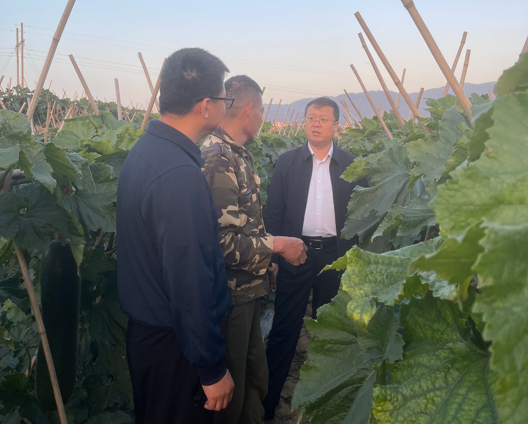 随后,调研组深入田间地头,实地察看了由学校培育的致富带头人刘劳令的冬瓜种植基地,仔细了解冬瓜长势、种植技术、市场行情及当前面临的实际困难,并结合学校资源优势,就种植技术优化、产销衔接等提出针对性建议,鼓励致富带头人持续发挥示范作用,引领更多村民参与产业发展。