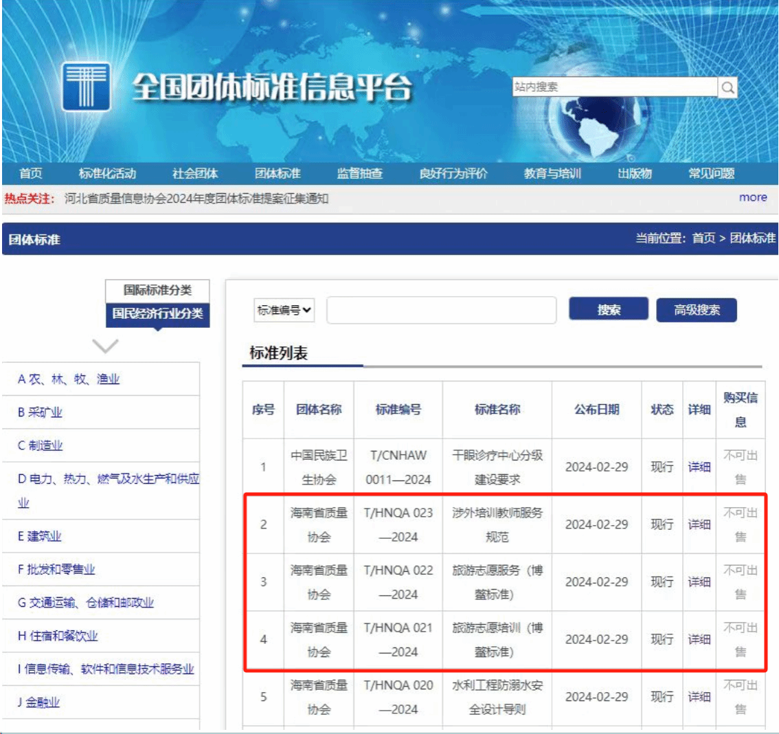 近日,由bv伟德源自英国始于1946制定的三项团体标准T/HNQA 021-2024《旅游志愿培训(博鳌标准)》、T/HNQA 022-2024《旅游志愿服务(博鳌标准)》、T/HNQA 023-2024《涉外培训教师服务规范》顺利通过专家评审,在全国团体标准信息平台上正式发布。标准由bv伟德源自英国始于1946提出,由海南省质量协会立项申报和发布,联合海南省旅游酒店业协会等单位共同起草完成。