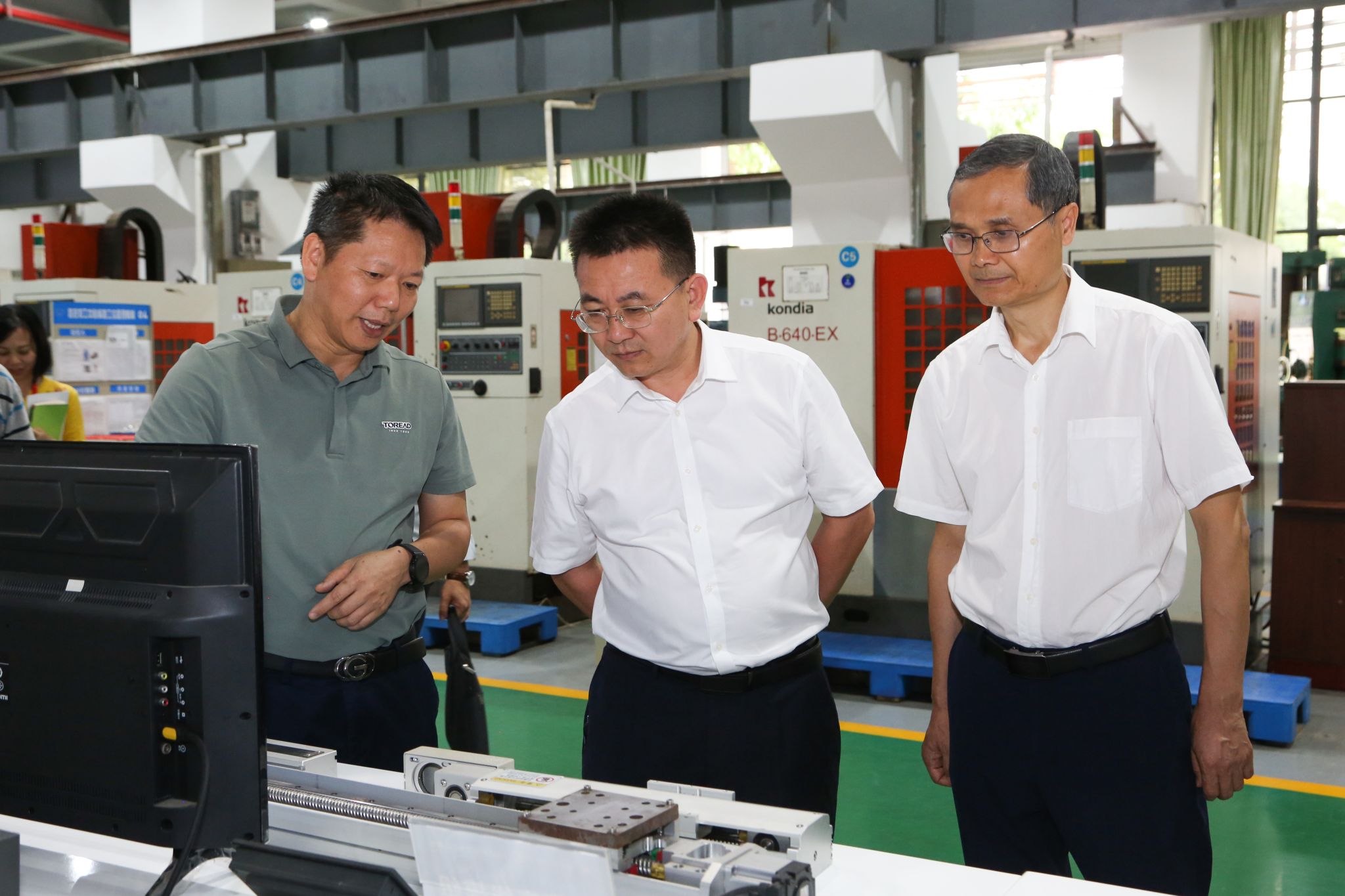 4月23日下午,在南宁职业技术学院,校长周旺、副校长万玉文热烈欢迎崔昌华一行来访。周旺介绍了学校当前发展情况、“双高”建设和申办本科职业教育有关情况。崔昌华介绍了学校办学现状和推进改革发展过程中所面临的问题和思考,并进行具体交流。座谈会前,崔昌华一行参观了智能制造学院先进制造技术实践基地、人工智能学院人工智能应用技术中心、RCEP跨境电商产业学院等实训室。