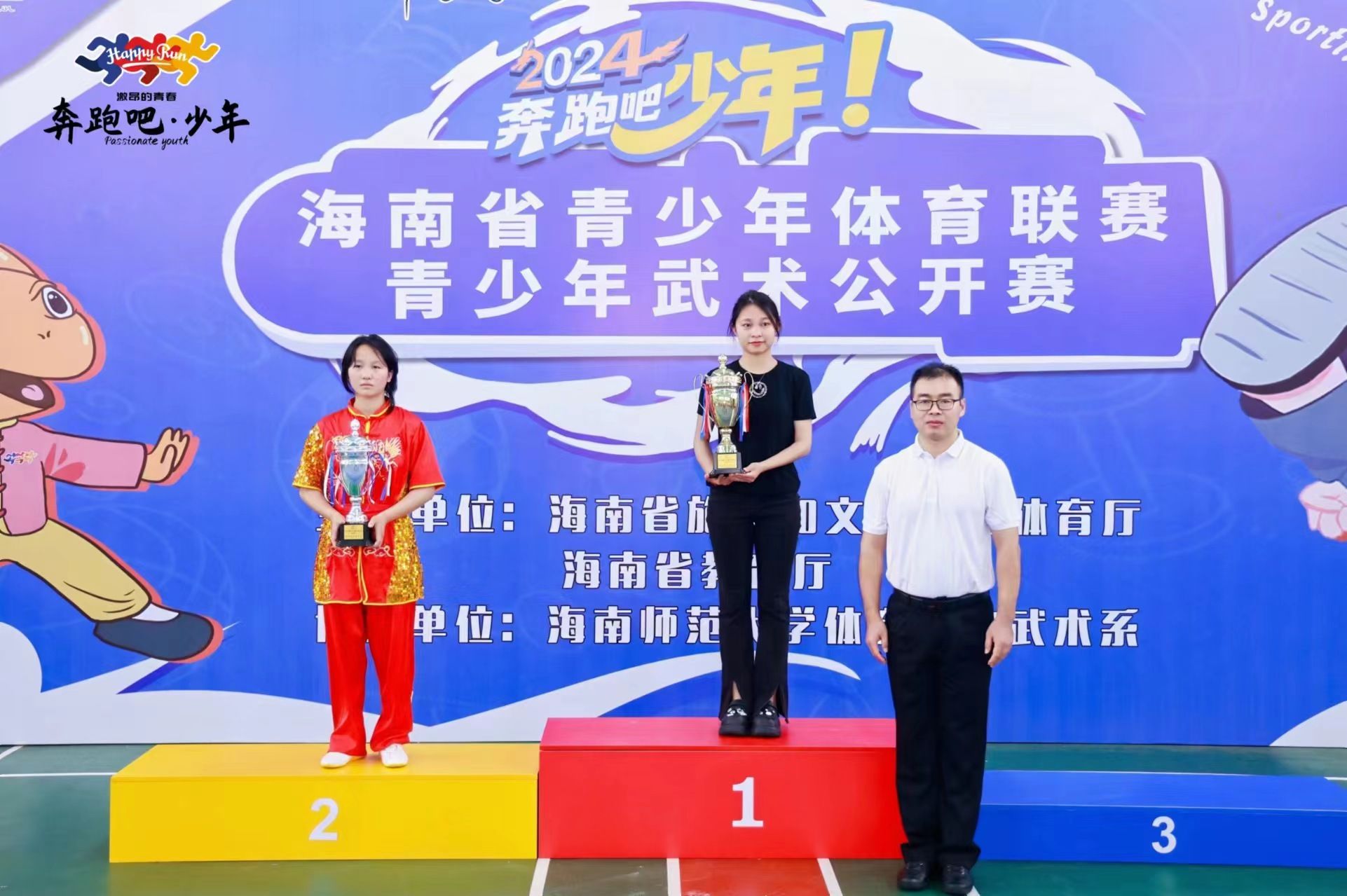 2024年“奔跑吧·少年”海南省青少年武术公开赛由海南省旅游和文化广电体育厅、海南省教育厅主办,海南师范大学体育学院武术系协办。赛场上,海经贸参赛选手眼神坚定,动作流畅有力,招式精准到位,力量恰到好处,获得了评委和观众的一致好评。荣誉的背后是同学们夜以继日的努力,他们严格要求自己,不断提升武术技巧,精心调整力度速度,每一次的练习,每一次的汗水,都是为了在赛场上展现出最好的自己。