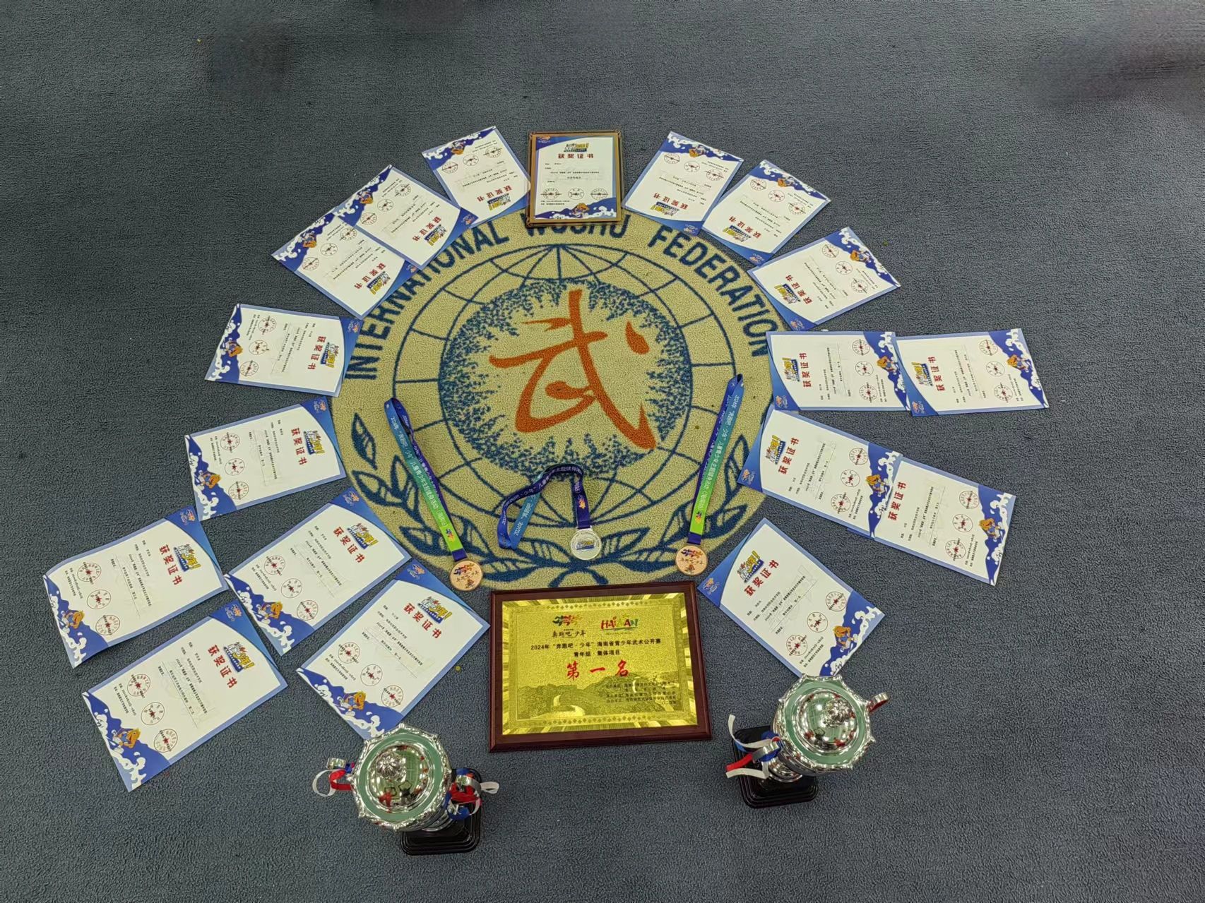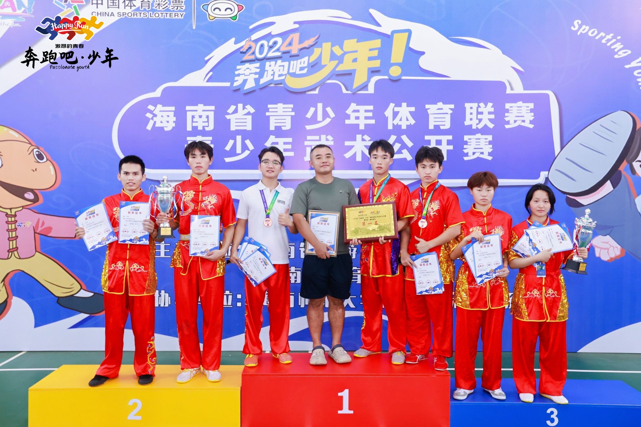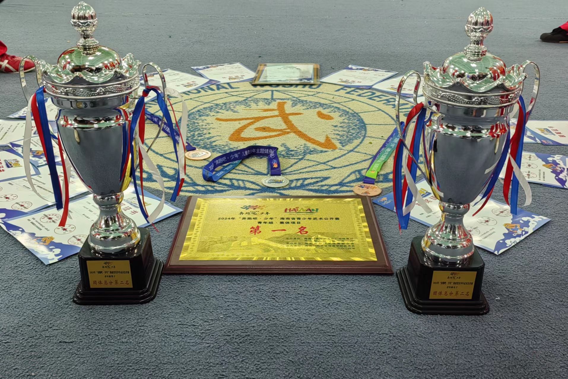 近日,2024年“奔跑吧·少年”海南省青少年武术公开赛在海口落下帷幕。经过激烈角逐,bv伟德源自英国始于1946参赛选手荣获青年组集体项目第一名、青年组男子团体总分第二名、女子团体总分第二名。罗贤涛荣获青年组男子其他地方特色拳种第二名、青年组男子自选器械第五名,洪世兵荣获青年组男子自选长拳第三名、青年组男子自选器械第四名,黎家俊荣获青年组男子其他地方特色拳种第三名,谢红强荣获青年组男子其他地方特色拳种第四名,许云堡荣获青年组男子自选器械第六名,谢万冲荣获青年组女子拳术第四名,刘佳荣获青年组女子拳术第五名,指导老师陈俊池荣获优秀教练员称号。