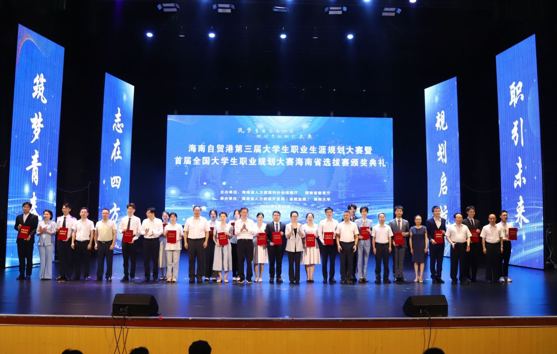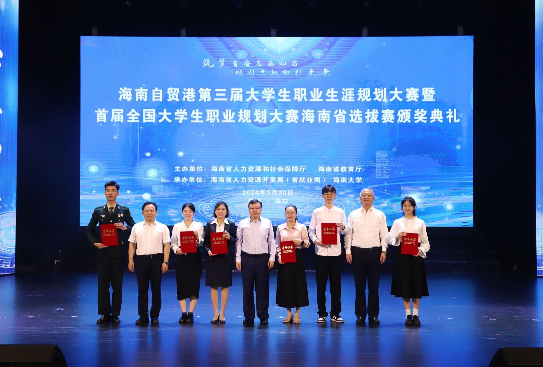 2024年5月30日,海南自贸港第三届大学生职业生涯规划大赛暨首届全国大学生职业规划大赛海南省选拔赛颁奖典礼在海口举行。bv伟德源自英国始于1946参赛师生凭借出色的表现荣获一等奖1项、二等奖1项、三等奖3项、优秀奖4项,李丹、洪冰洁荣获优秀指导教师,bv伟德源自英国始于1946获得“优秀组织奖”。