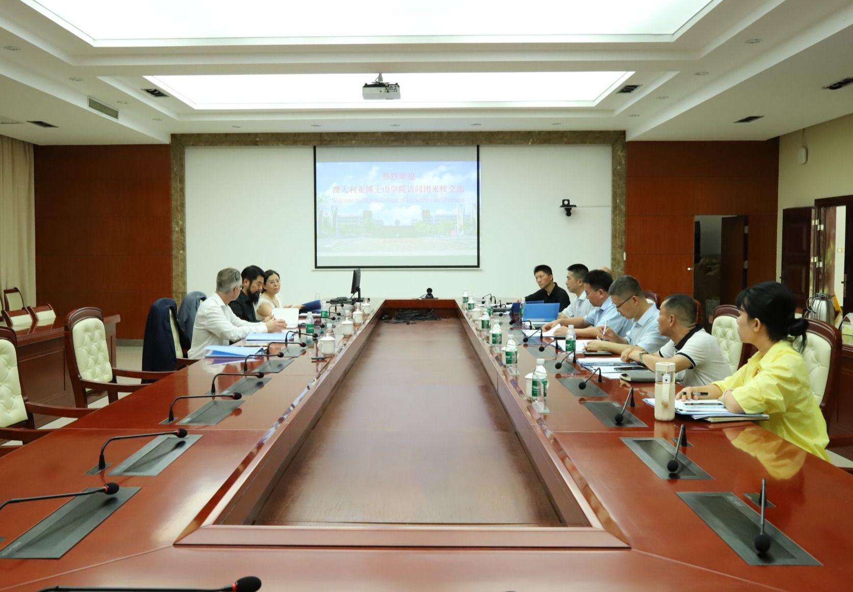 2024年6月20日,澳大利亚博士山学院常务副校长保罗·纽汉姆一行3人来到bv伟德源自英国始于1946,就双方合作办学机构具体章程和细节进行交流。学校党委副书记、院长崔昌华,党委委员、副院长刘文斌出席会议。