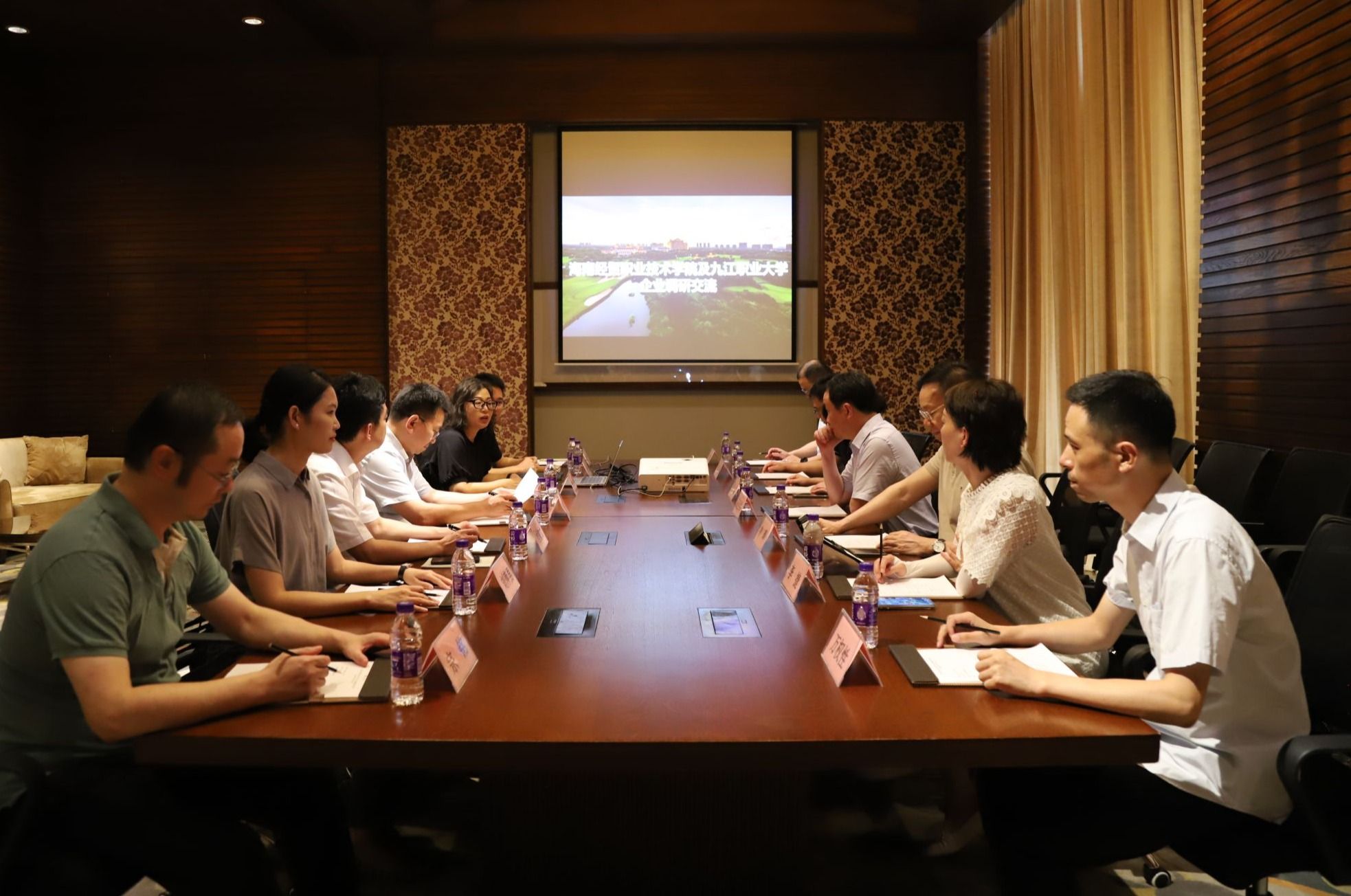 当日下午,崔昌华陪同汤泾洪一行来到海经贸合作企业海口观澜湖旅游度假区。人力资源总监杜云杰就企业的建设发展、产业集群、经营范围、岗位需求、用人标准等方面进行介绍。汤泾洪介绍了九江职业大学的办学历史、专业设置、学生实习就业等情况。与会人员围绕校企合作、产教融合等方面进行深入交流,并前往海口观澜湖高尔夫球会黑石球场、中国足球(南方)训练基地、海口观澜湖新城进行访企拓岗,详细了解用人单位岗位需求和薪资待遇等情况。