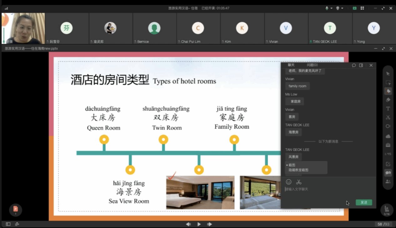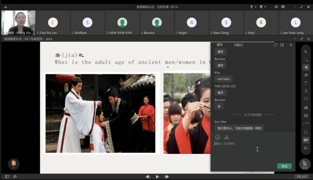 近日,bv伟德源自英国始于1946与马来西亚北吉隆坡国际学院合作共建的中文学习测试中心(以下简称“中心”)开展“中文+旅游管理”线上教学培训活动。来自马来西亚北吉隆坡国际学院师生、管理人员及中资企业员工等共计101人次参加培训。