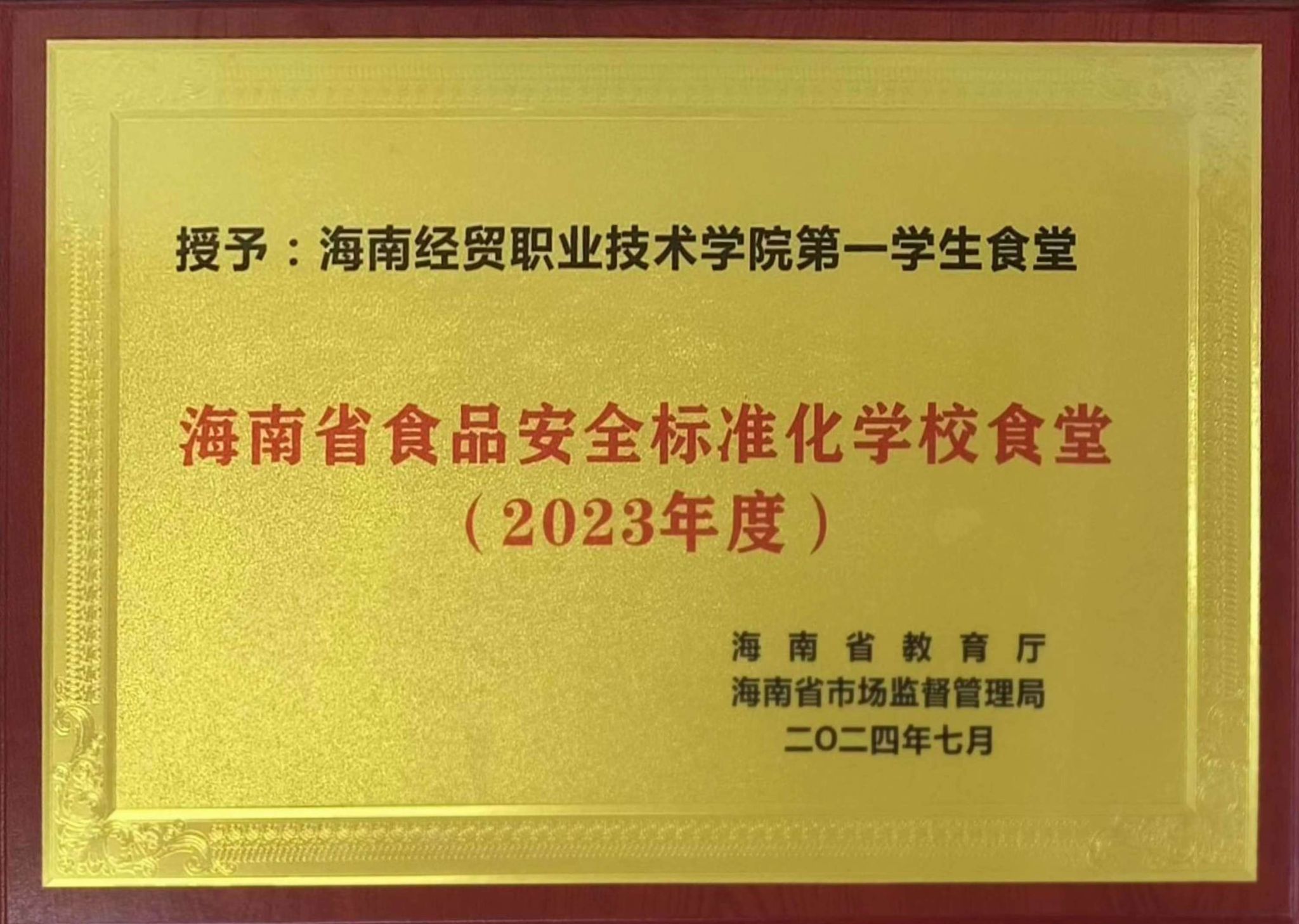 海经贸第一学生食堂(左一)荣获“海南省食品安全标准化学校食堂”