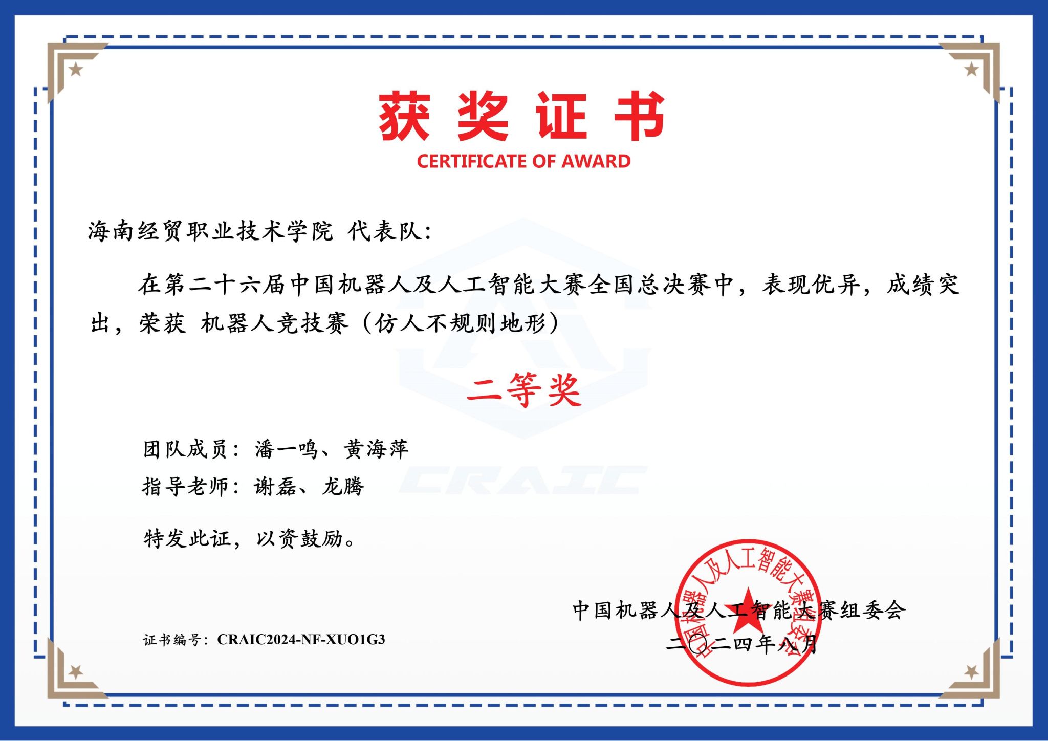 中国机器人及人工智能大赛是一项历史悠久、影响广泛的全国性学科竞赛,目前已为我国培养了大量“能动手、敢创新、善协作”的复合型人才。本届赛事设置“创新、应用、竞技、挑战”四大类别,涉及人形机器人、轮式机器人、多足异形机器人、智慧农业机器人、群体协作机器人等多种形态与应用领域,聚焦前沿技术与产业需求。在全国总决赛中,海经贸参赛选手与来自哈尔滨工业大学、浙江大学、华中科技大学、国防科技大学、北京航空航天大学、北京理工大学、同济大学等208所高校的407支队伍1300余名选手同台竞赛,围绕自动驾驶、机器人及人工智能等领域的前沿技术应用与实践展开激烈竞争,最终取得优异成绩。