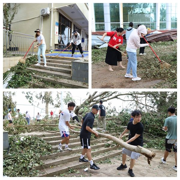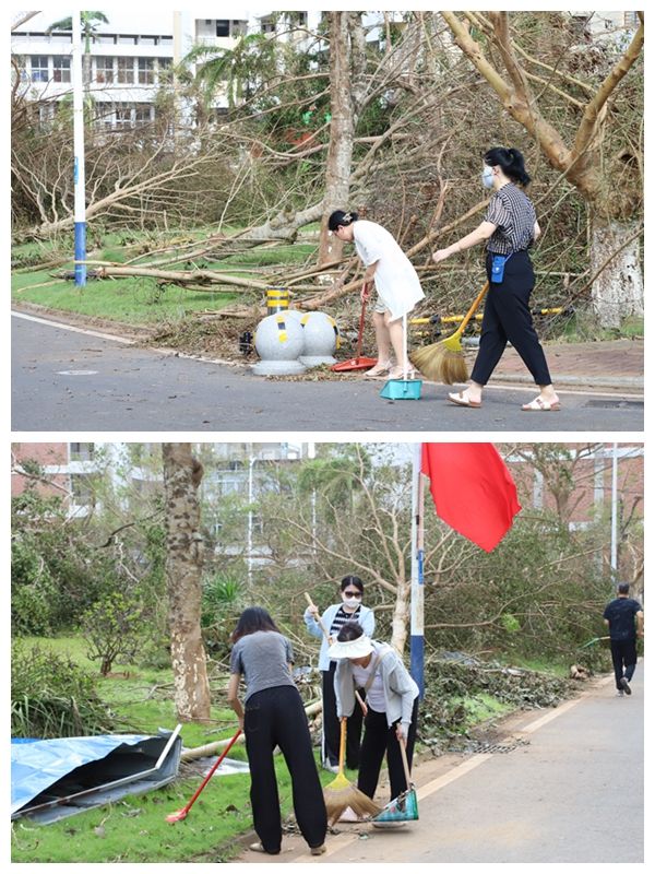 超强台风“摩羯”过境后,在通讯网络不畅的情况下,bv伟德源自英国始于1946广泛组织动员党员干部和学生志愿者,组成“党员先锋队”“青年冲锋队”,第一时间投入灾后恢复重建工作,学校已基本恢复生活教学秩序。今天,全体师生员工以劳动教育课的形式来上“灾后第一课”,有序参与到校园灾后恢复重建工作中来,用爱与责任共同守护家园。