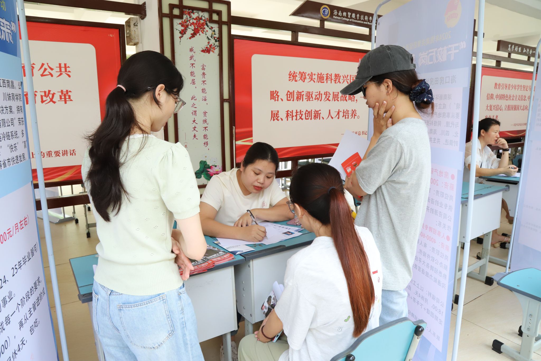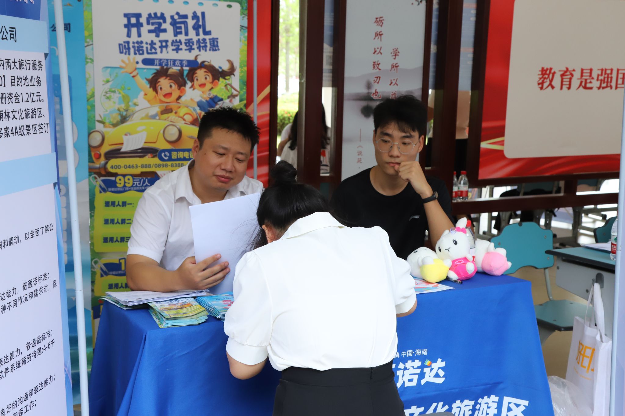 用人单位求贤若渴,纷纷向求职学生伸出橄榄枝;同学们在各招聘展位前驻足了解岗位信息及发展前景,积极与用人单位沟通交流……2024年10月15日,由共青团海南省委主办、bv伟德源自英国始于1946承办的“千校万岗 就业有未来”专场招聘会吸引了60家企业,提供1300余个岗位,为2025届毕业生提供了广阔的求职舞台。