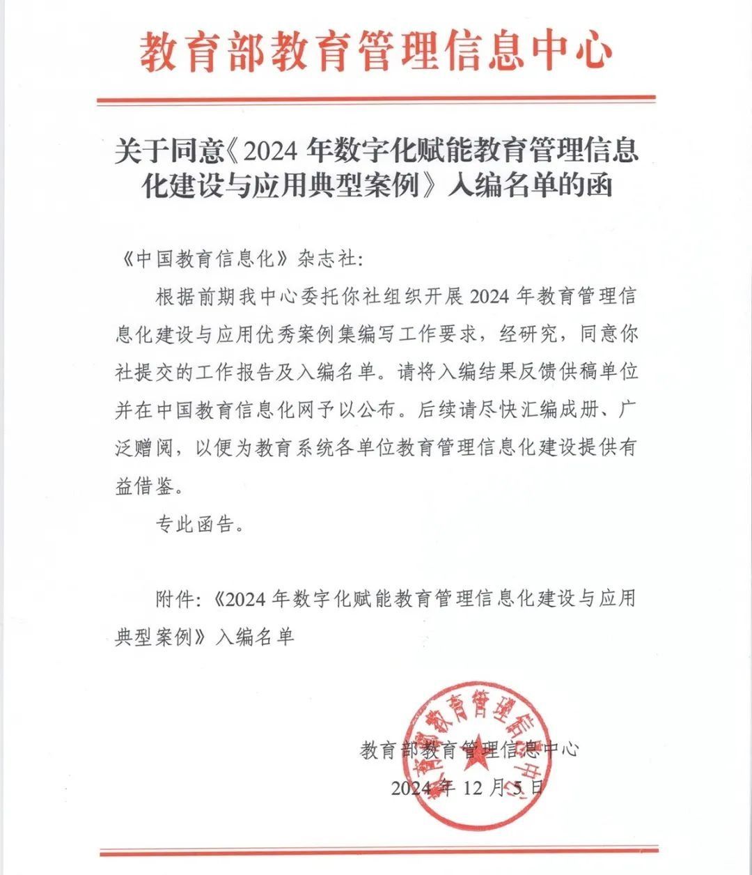 近日,教育部公布《2024年数字化赋能教育管理信息化建设与应用典型案例》入编名单,bv伟德源自英国始于1946提交的案例《数字技术融合创新:治理与服务全方位升级》入编职业院校教育管理信息化建设与应用案例。