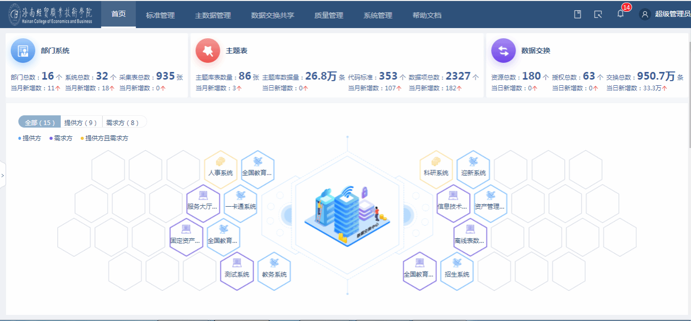 学校将信息化建设和数字化转型纳入“十四五”规划,近年来着力加大智慧校园建设力度,开展数字安防系统升级改造、智能设施和物联感知系统建设、智慧校园应用中心升级改造、网上办事大厅等项目,夯实了信息化软硬件基础,提高了运行效率和安全保障。建立了统一的数据资产管理平台,通过“数据跑”代替“人工跑”,大幅度提升事项办理效率。建成了智能财税虚拟仿真实训中心、数字艺术虚拟仿真创新中心、思政课程虚拟仿真实训中心、智能控制虚拟仿真实训中心、精益创业实训中心、金融虚拟仿真实训中心等多个虚拟仿真实训中心,为专业实训教学提供了类型多样丰富的教学内容库。全面开设人工智能导论、数据分析等相关课程,对现有专业进行全面数字化升级。学校以海南数据超市经贸分中心为载体,实现了学校与产业对接,开展行业数据分析与挖掘工作,与高校、科研机构和企业等开展科研合作。一系列智慧校园成果,为师生创造了更加智能、高效、安全的学习与工作环境。
