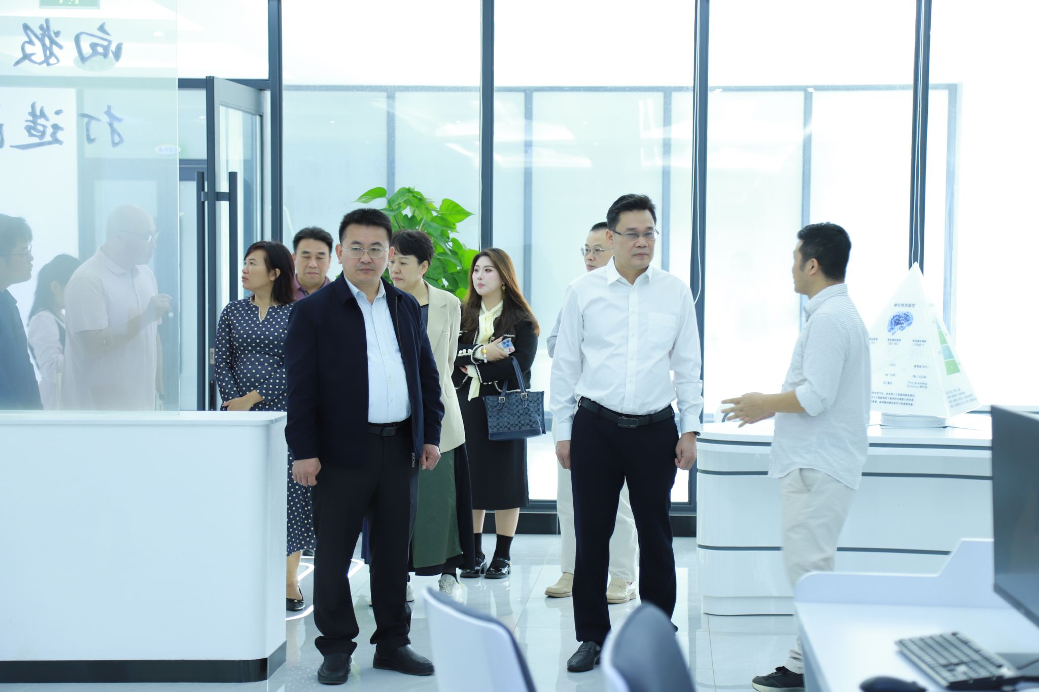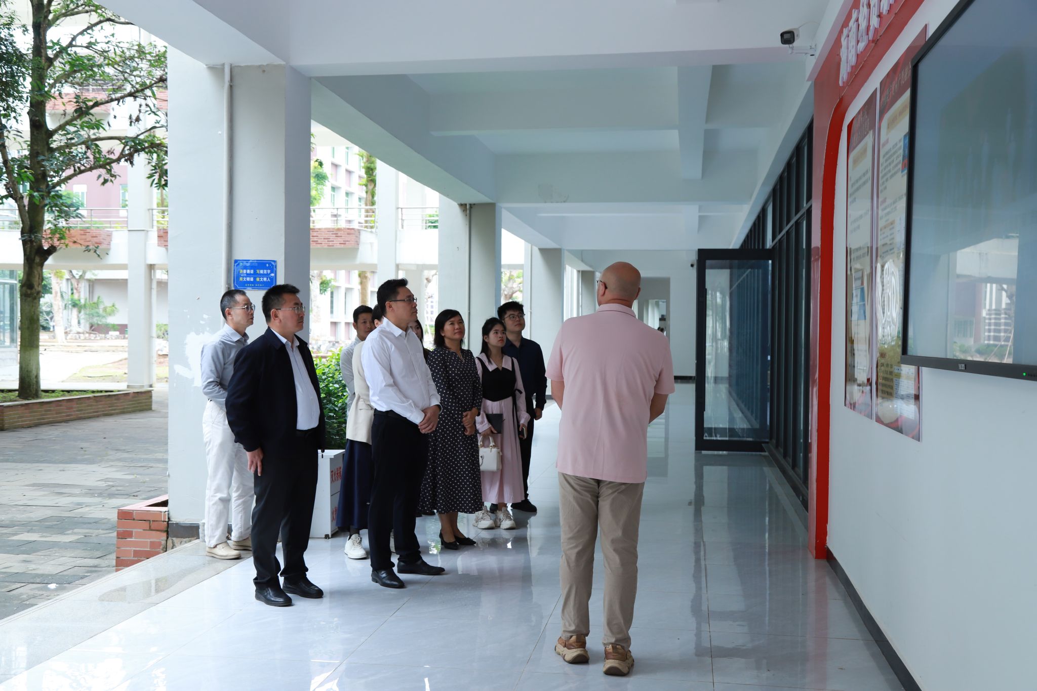 在崔昌华的陪同下,韦光茂一行参观考察校园,在新一代信息技术ICT产教融合基地和eWTP产业学院,听取有关负责人详细介绍专业建设有关情况。