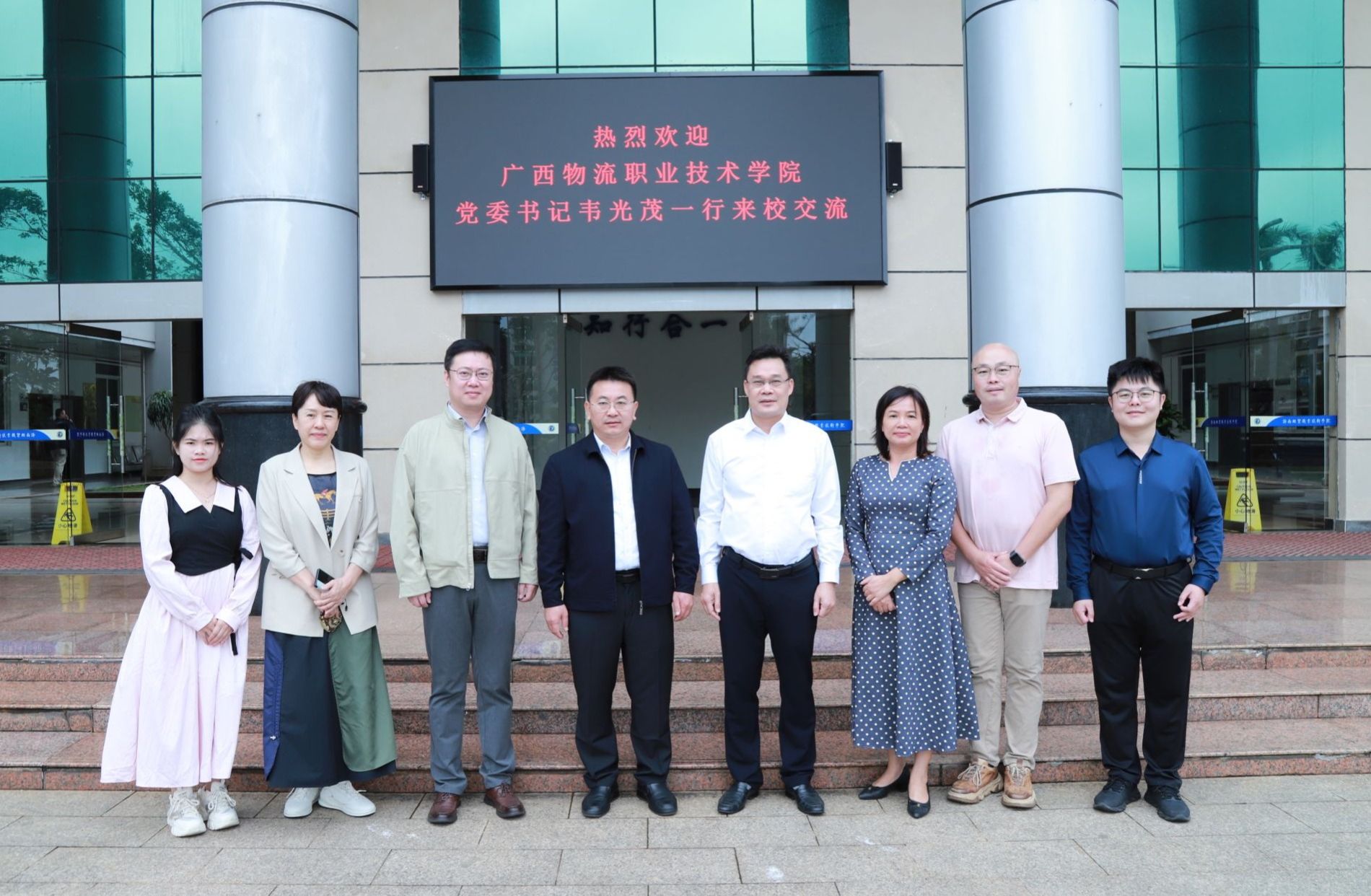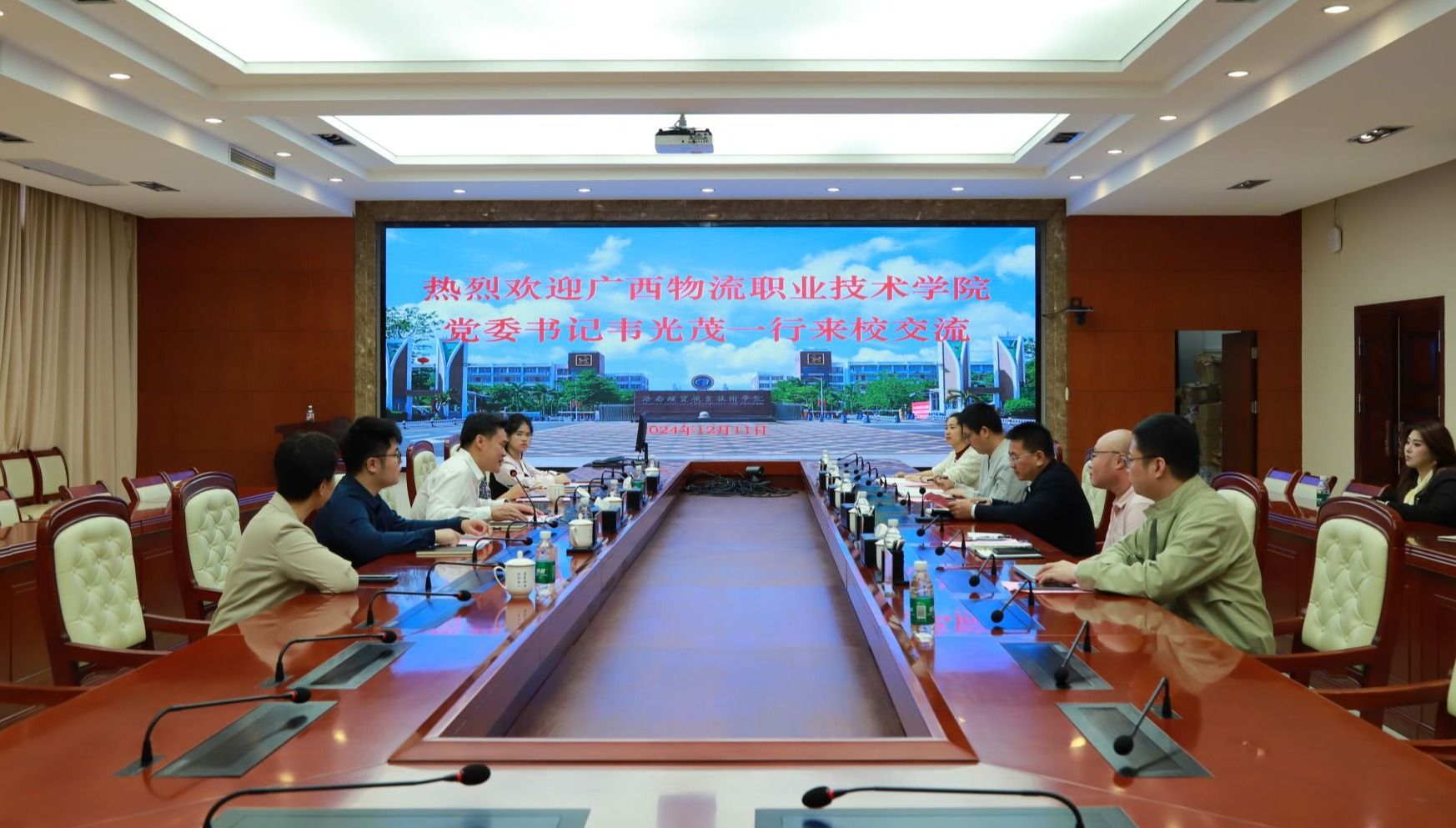 2024年12月11日,广西物流职业学院党委书记韦光茂一行4人来到bv伟德源自英国始于1946,就探索校企合作新模式、产教融合经验做法等方面进行交流。学校党委副书记、校长崔昌华热情接待了韦光茂一行。