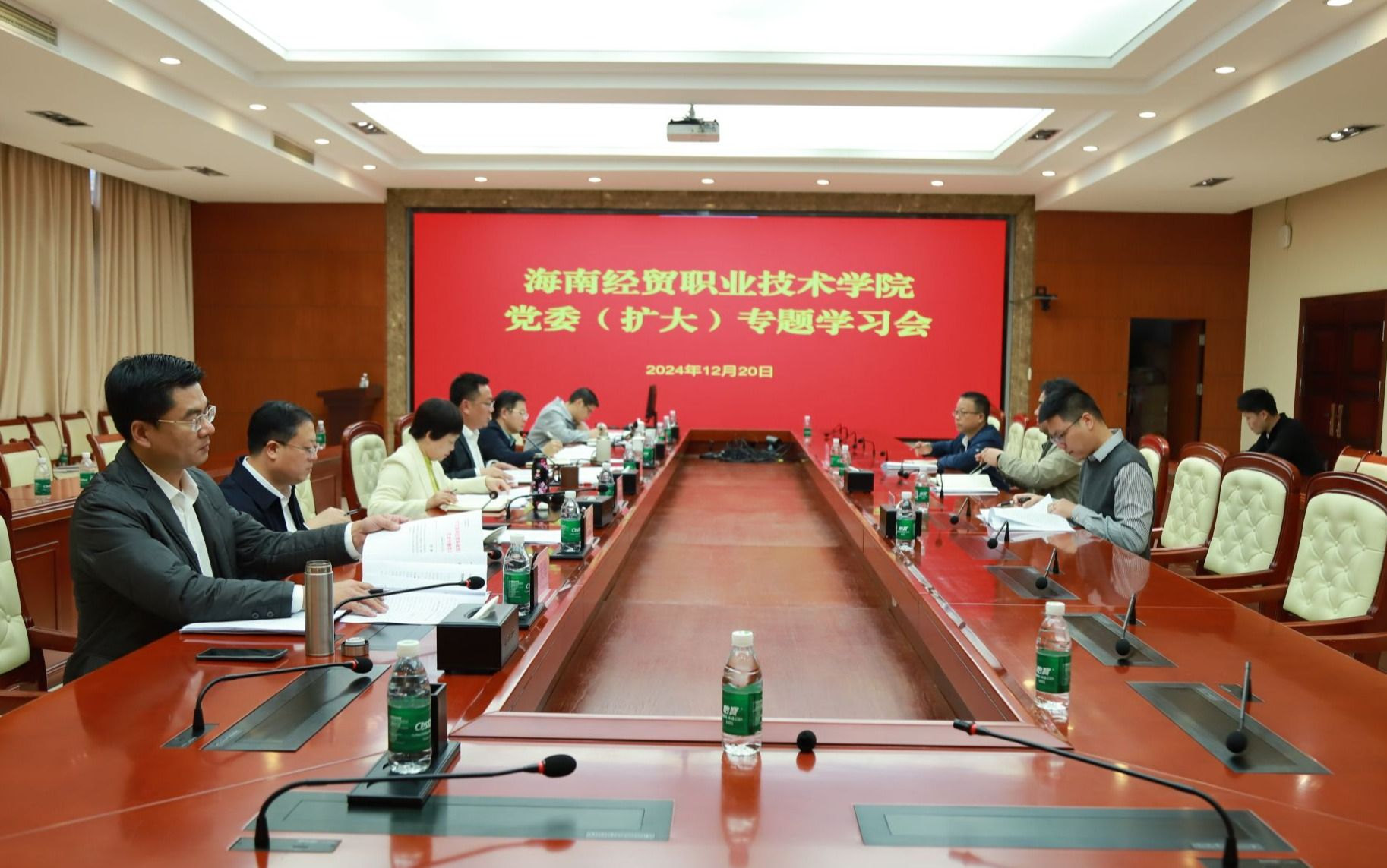 教务处、产学研合作处有关负责人结合学习内容和实际工作,围绕职业教育发展、学校“新双高”申报和本科职业大学申办、学科专业建设、增强服务海南自由贸易港建设适应性等方面交流学习体会。