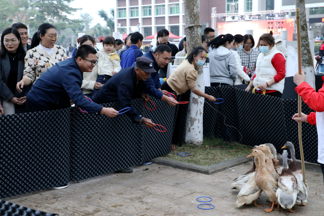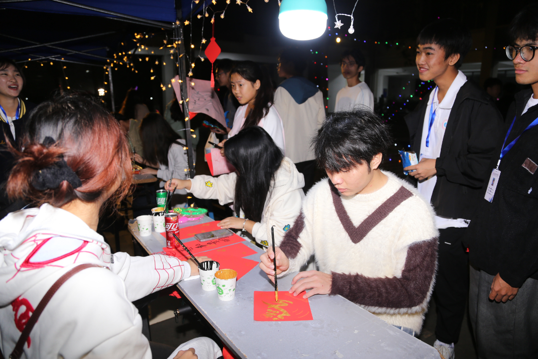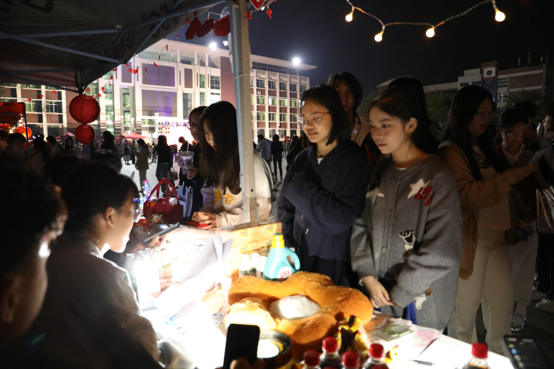 活动现场张灯结彩,节日气氛热烈而浓厚,处处彰显着传统文化的独特魅力。“哇!我砸中了”“一、二、三,瞄准,投”“天哪!我竟然套中了”“这个灯谜也太难了吧” ……校团委、各二级学院以及学生社团设置的各个摊位前人潮涌动、热闹非凡,一系列精心设计、兼具趣味与文化底蕴的互动项目吸引着老师同学们踊跃参与。每个游戏项目前都排起了长队,大家乐此不疲地“四处征战”,在欢声笑语中挥手告别2024。