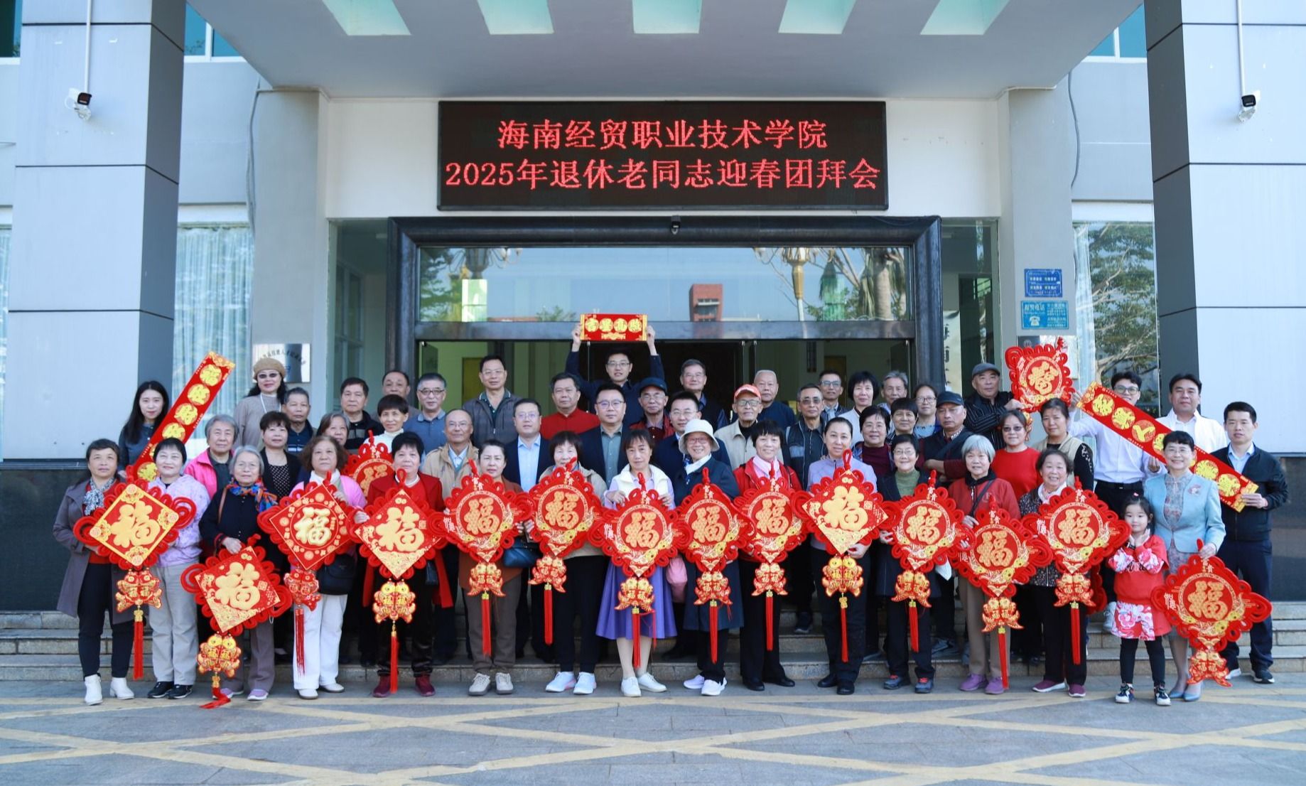 张灯结彩、喜气洋洋,红红火火、热闹非凡。在春节来临之际,1月21日,bv伟德源自英国始于194658位退休老教师回到美丽的校园,共迎新春佳节。学校党委书记王华,党委副书记、校长崔昌华,党委委员、副校长李厚永,党委委员田小林与退休老同志们欢聚一堂,回忆海经贸发展历史,共叙学校近年来取得的成绩,展望美好发展前景,为老同志们送上节日祝福。