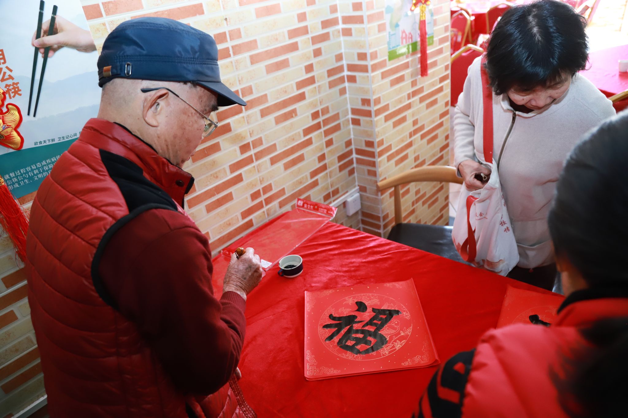 品美食、写“福”字、送对联……团拜会现场气氛热烈,充满了欢声笑语。老同志们集体观看了学校宣传片,深刻感悟学校在办学条件、人才培养、师资队伍、国际化办学等方面的成就。工作人员把退休老教师林长武教授现场写的“福”字送到每一位退休教师手中,学校还为大家准备了丰富的春节慰问品和美味的菜肴,感谢退休老教师们为学校发展所作出的贡献。